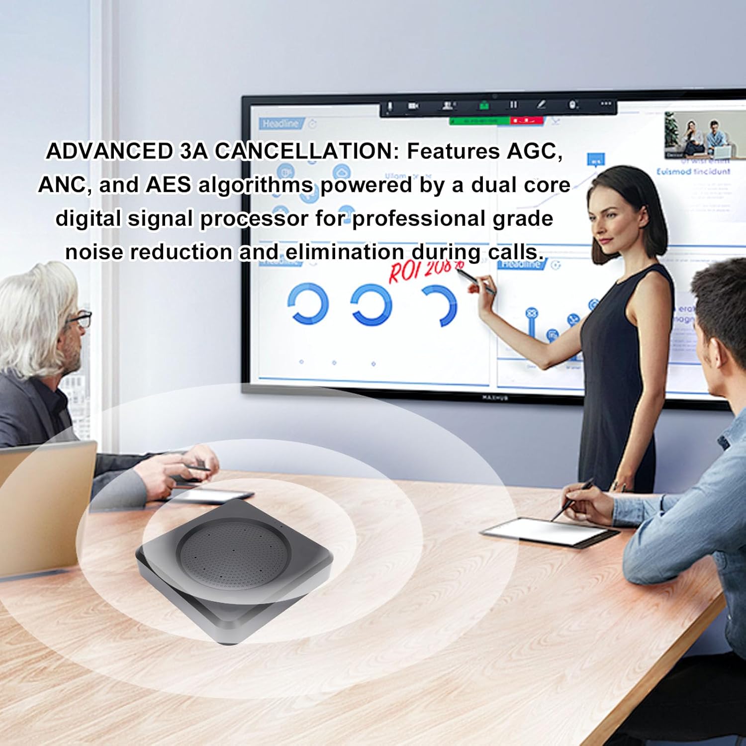 10m Conference Microphone, 3.5mm Omnidirectional Conference Speakerphone with AGC ANC AES Noise Reduction for Video Conferencing Remote Teaching Telemedicine