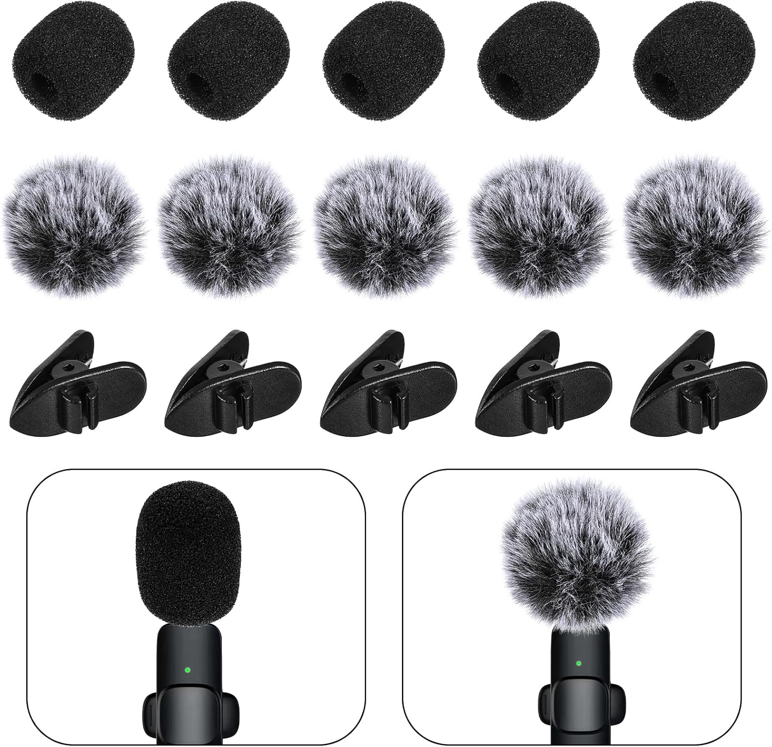 15Pcs Mini Wireless Furry Windscreen Foam Cover Set for Lavalier Microphone Wind Muff Foam Mic Cover with Clip to Reduce Plosive and Better Highlight Vocals Pop Filter Washable Windproof Wind Screen