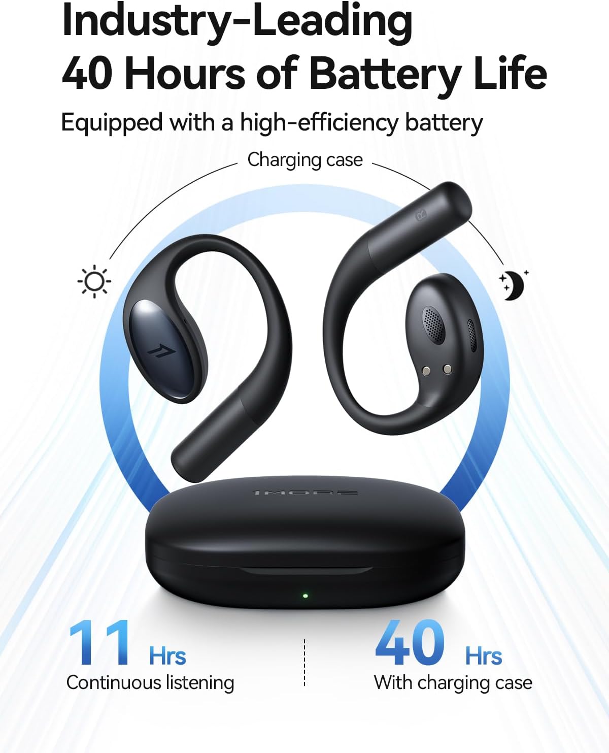 【40H Long Playtime】With up to 11 hours of playback on a single charge and a total of 40 hours of playback when used with the charging case, the 1MORE S51 wireless Bluetooth earphones give you exceptional battery life for outdoor sports or calls.