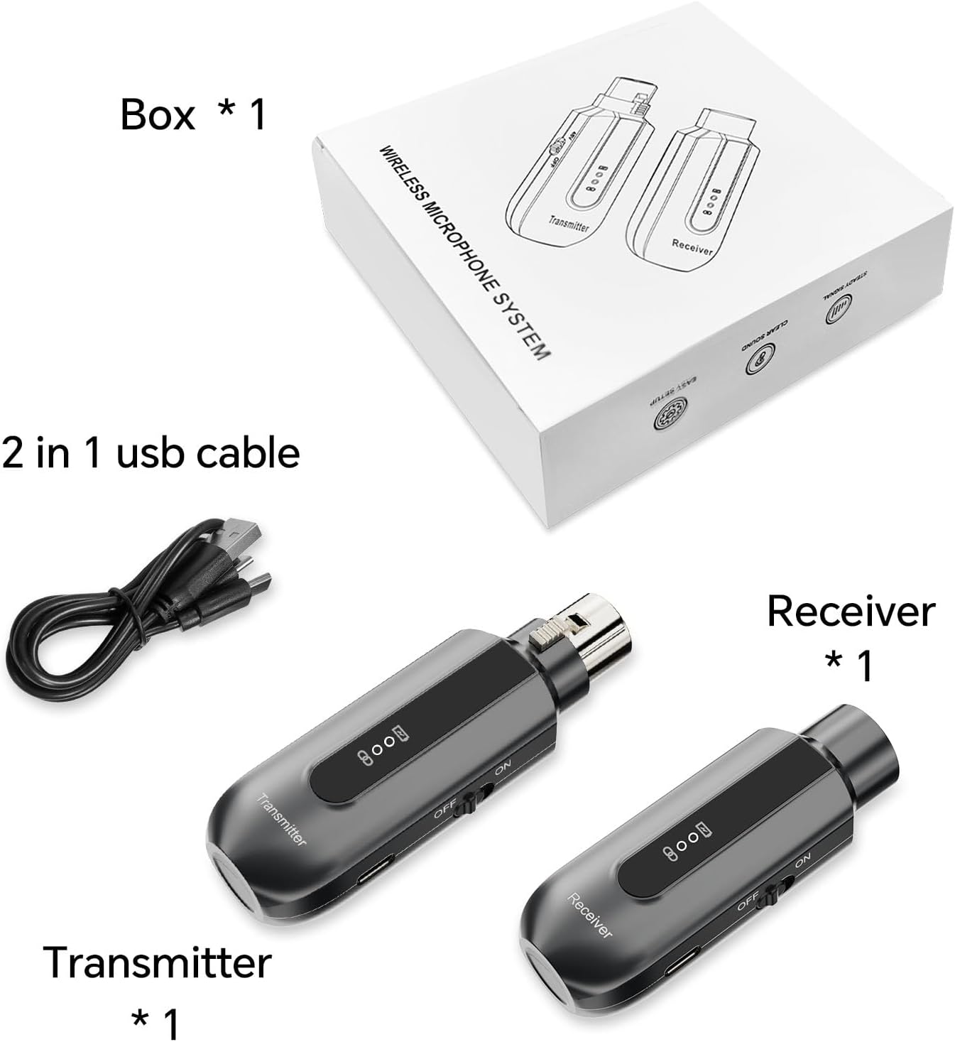 High Quality Sound Transmission: Wireless XLR transmitter and receiver, 2.4GHz band is optimal for Microphone wireless, high signal stability, low interference and short audio delay. The delay is less than 5ms, the sampling rate 24 bit/48K.Transmission range of up to 150ft in open areas