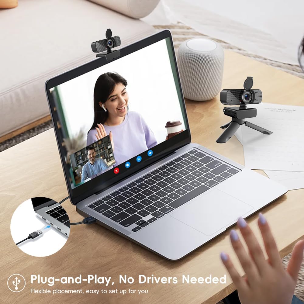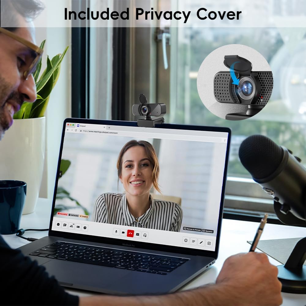 1080P HD Webcam with Microphone, Noise Cancellation, Privacy Cover, Wide-Angle Lens, Auto Light Correction, Plug & Play USB Webcam for Laptop, Desktop, PC, Mac, Zoom, Skype, Streaming (Black)
