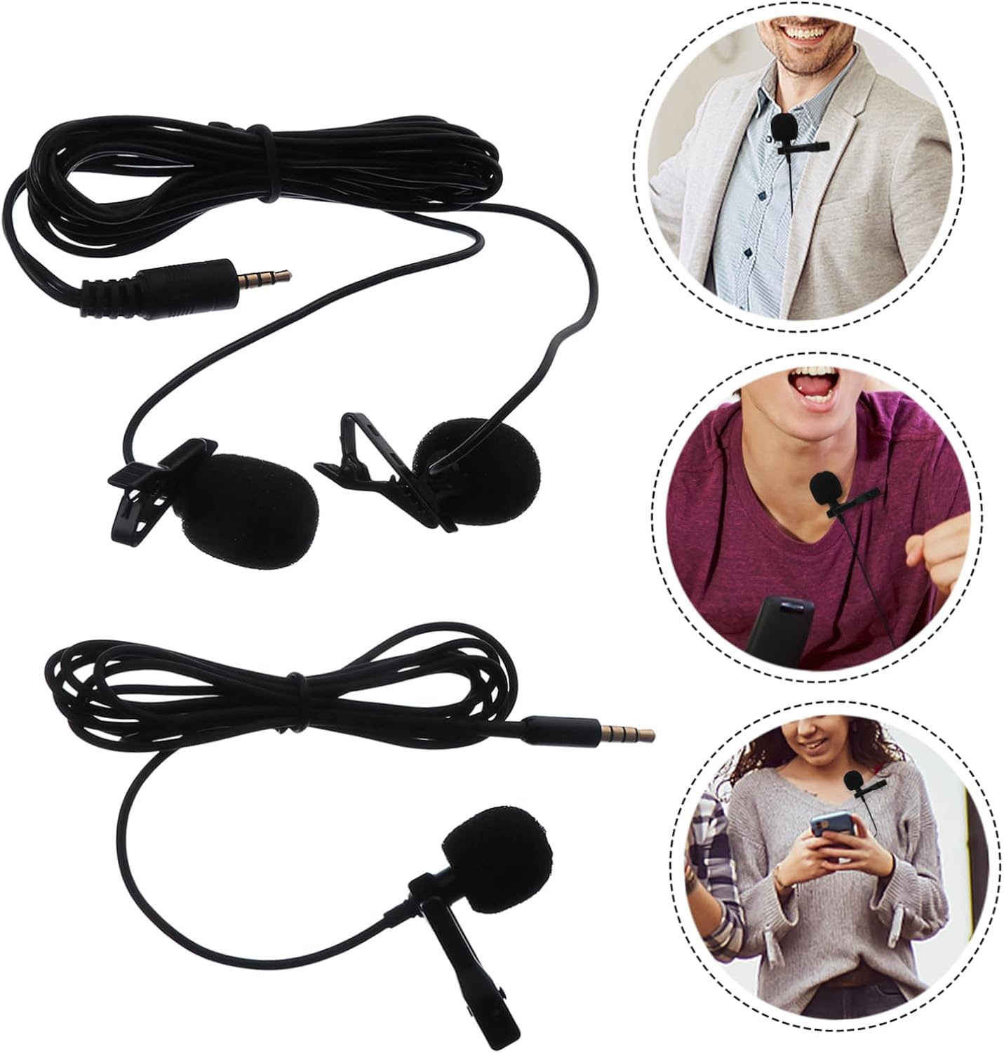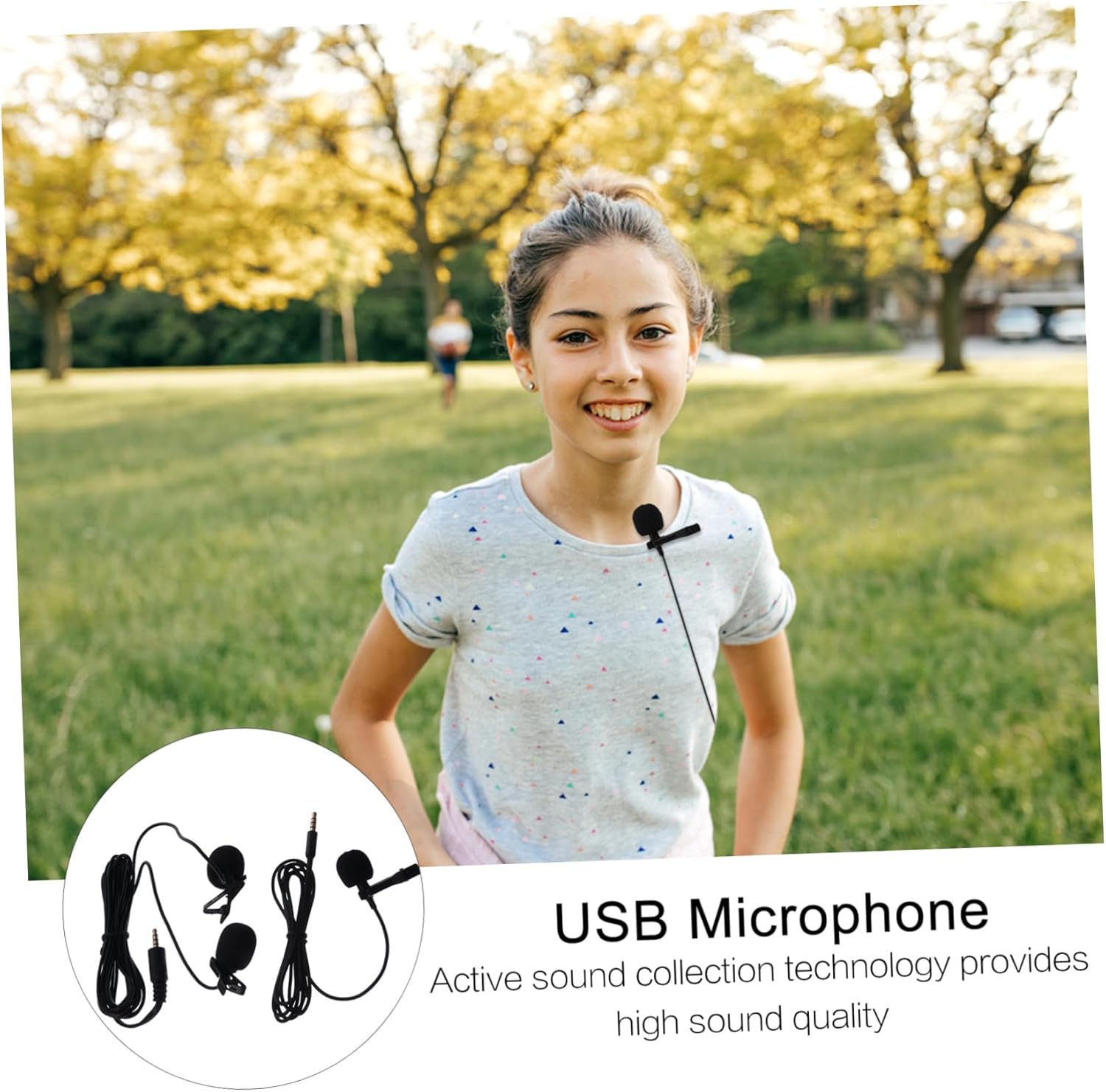 • 2sets Clip Microphone Lavalier Mic for Cell Phone Omnidirectional Conference Mic USB Lavalier Karaoke Live Vlog Noise Reduction Practical Clip Design