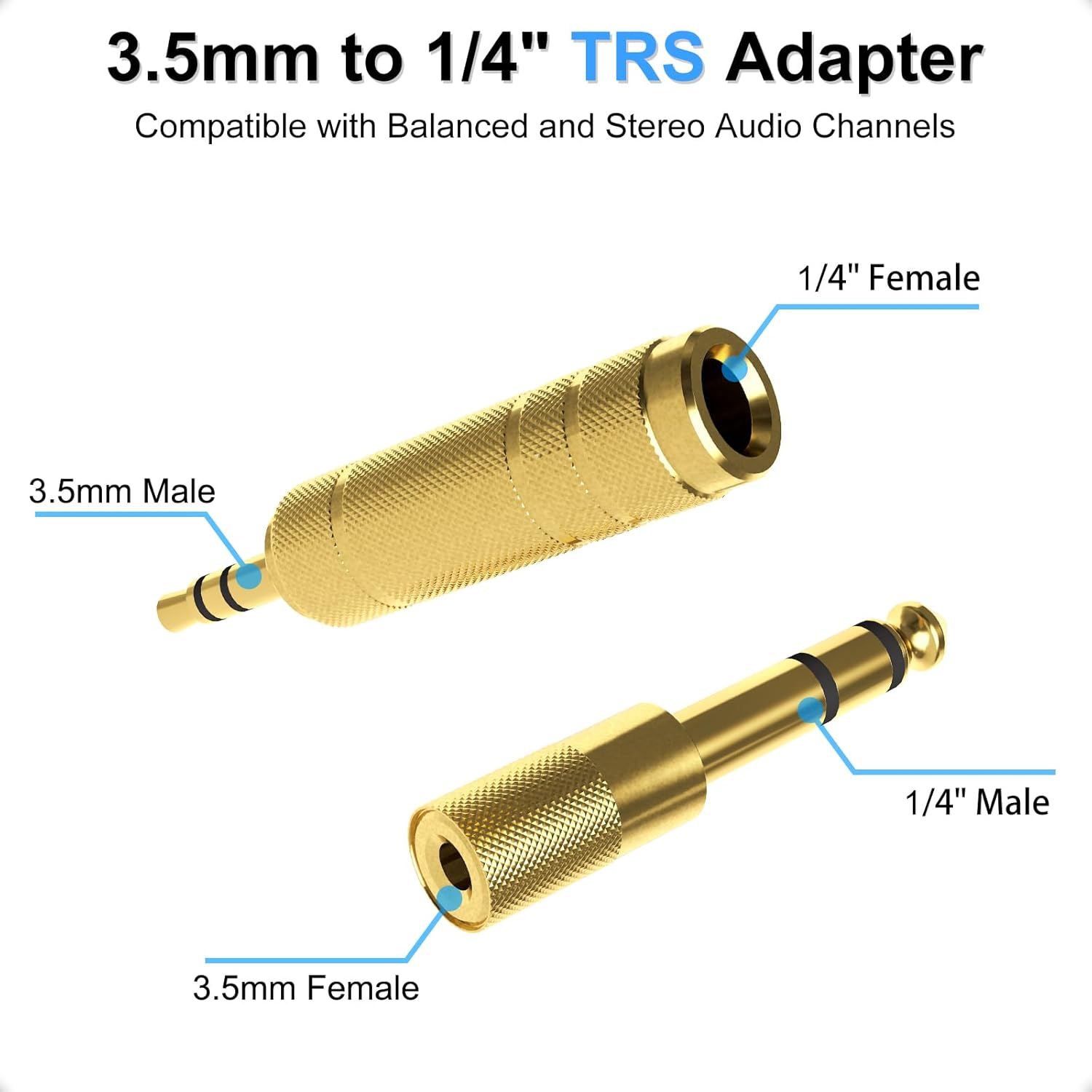Versatile Connectivity: This set includes 3.5mm female to 1/4″ male and 3.5mm male to 1/4″ female adapters, allowing better connections between instruments and consumer devices, enhancing audio compatibility.