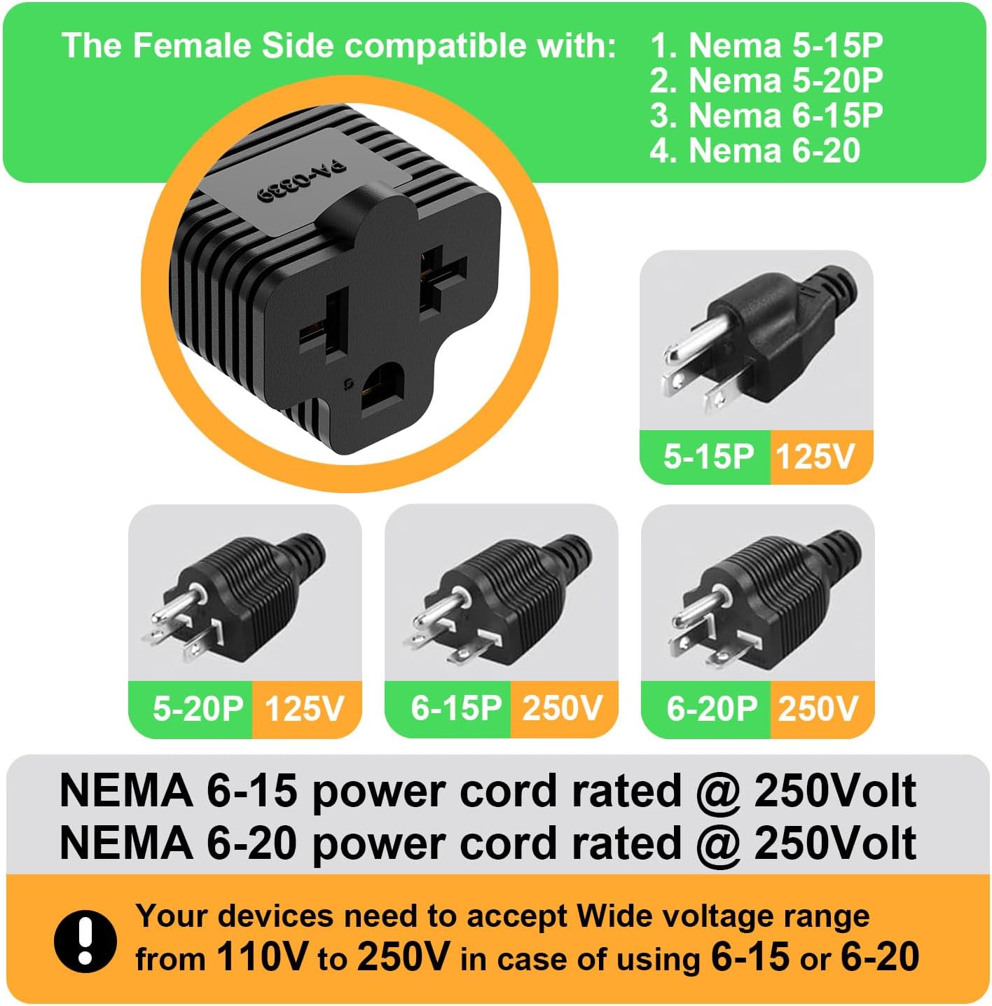 [IMPORTANT] Your power devices need to accept WIDE RANGE VOLTAGE ] (range from 110Volt to 250Volt) in case of working with Nema 6-15 or Nema 6-20 Power cord, Because Nema 6-15 or Nema 6-20 accept only 15A/20A @250 Volt,