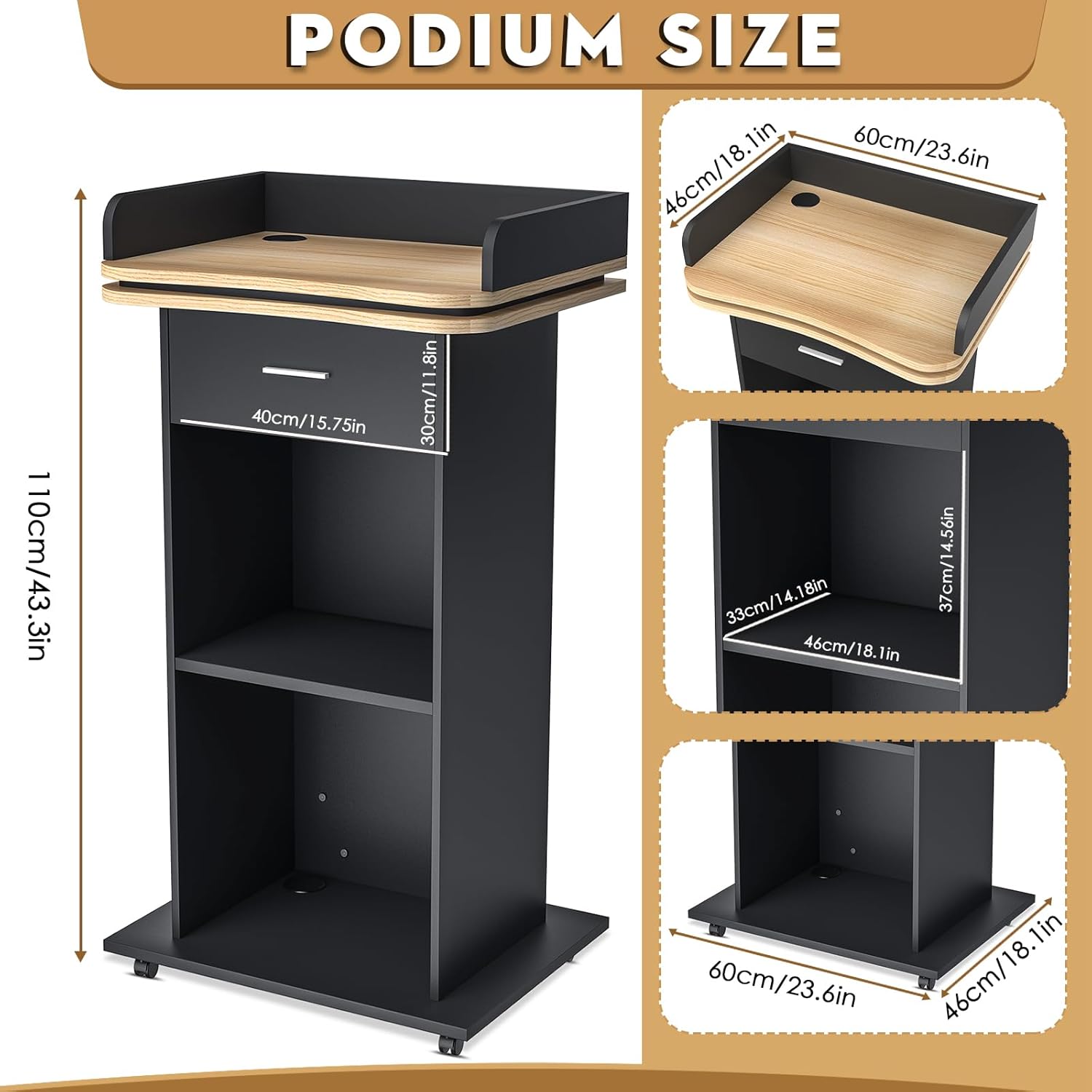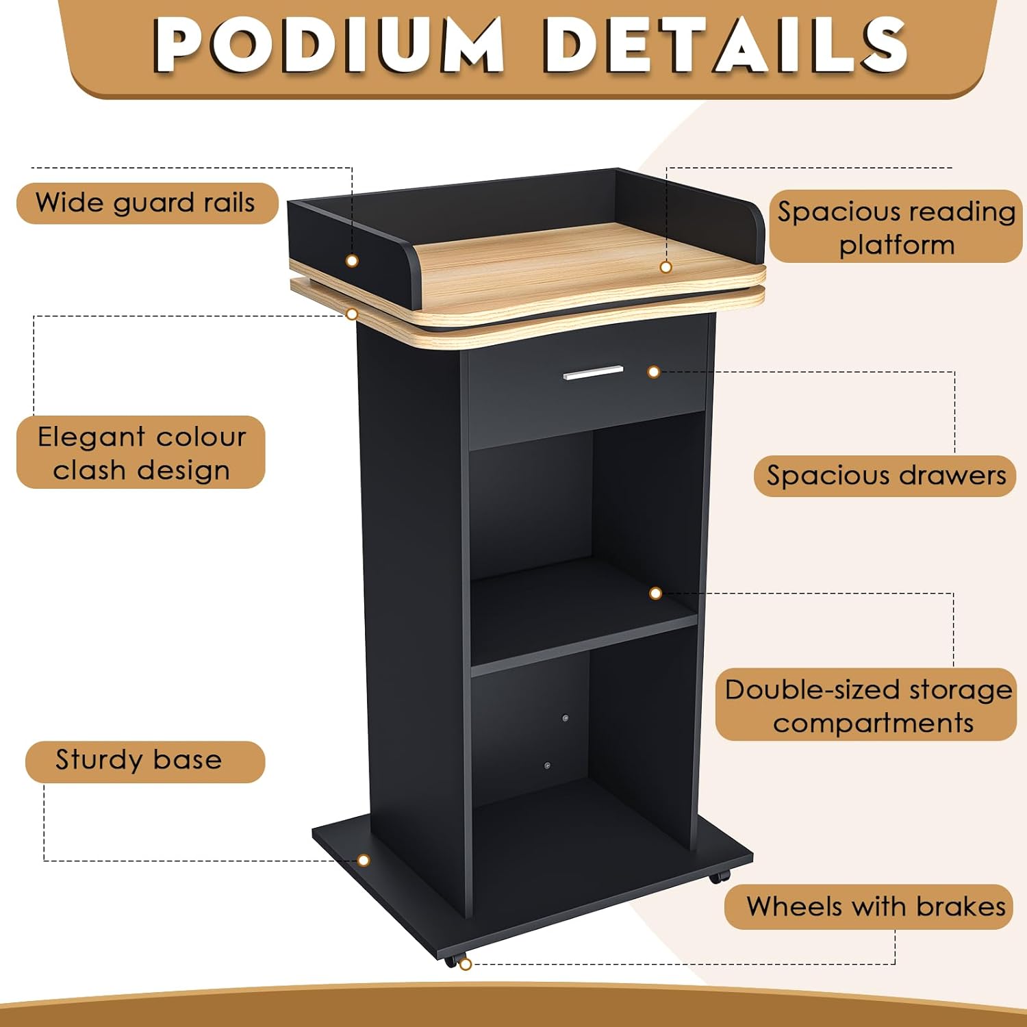 The wooden lectern stand comes with 4 wheels, designed with lockable features to prevent movement during speeches.