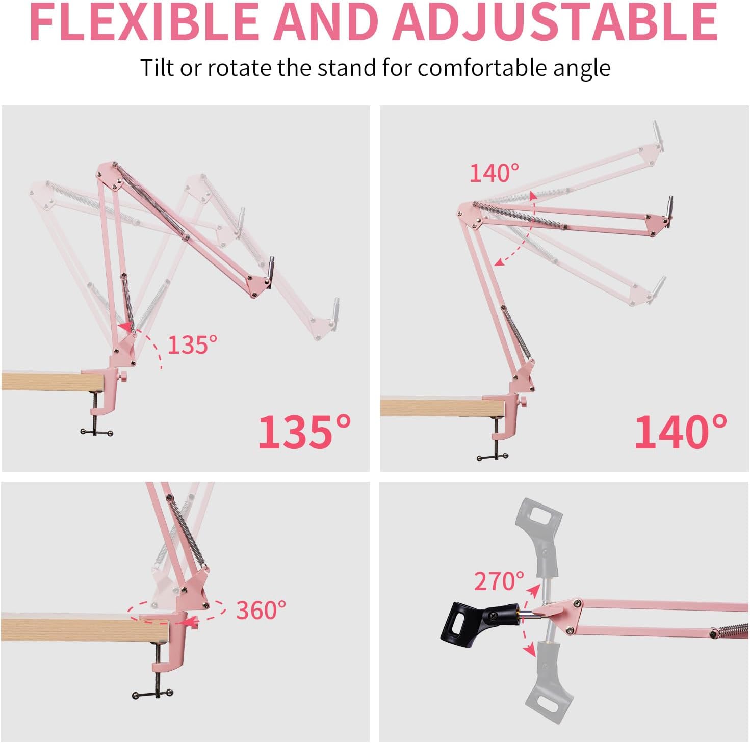 【Adjustable Boom Arm】 Conveniently adjust the angle and height of this mic boom arm to show your voice—just loosen the adjustment knob and adjust the boom arm. It’s also easy to fold up and carry.