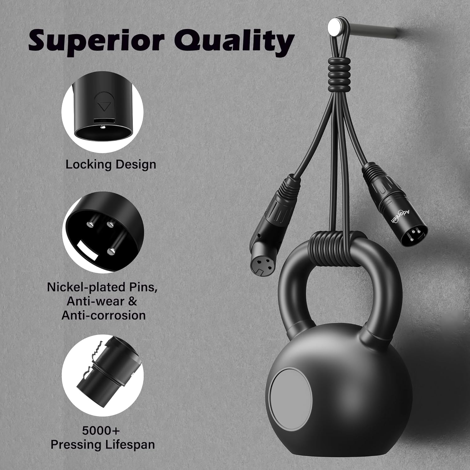High Performance: Professional 3-pin XLR balanced interface guarantees stable signal transmission with effective noise rejection—-Premium Oxygen-Free Copper (OFC) conductors optimize conductivity and minimize signal degradation—-Dual-shielding (aluminum foil + high-density copper braid) effectively suppresses EMI/RFI interference, eliminating pops/static – perfect for studio/stage applications
