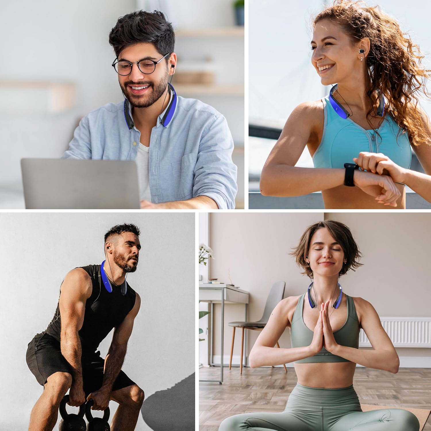 [Ergonomic neckband & Retractable Earbuds]: Ergonomic neckband design allow you to wear the headphones on your neck more comfortably and decrease the pressure of your ears. The Auto retractable earbuds allows you to pull the retractable earbud wire to the length you want and press the retract button can store the earbuds wire automatically.