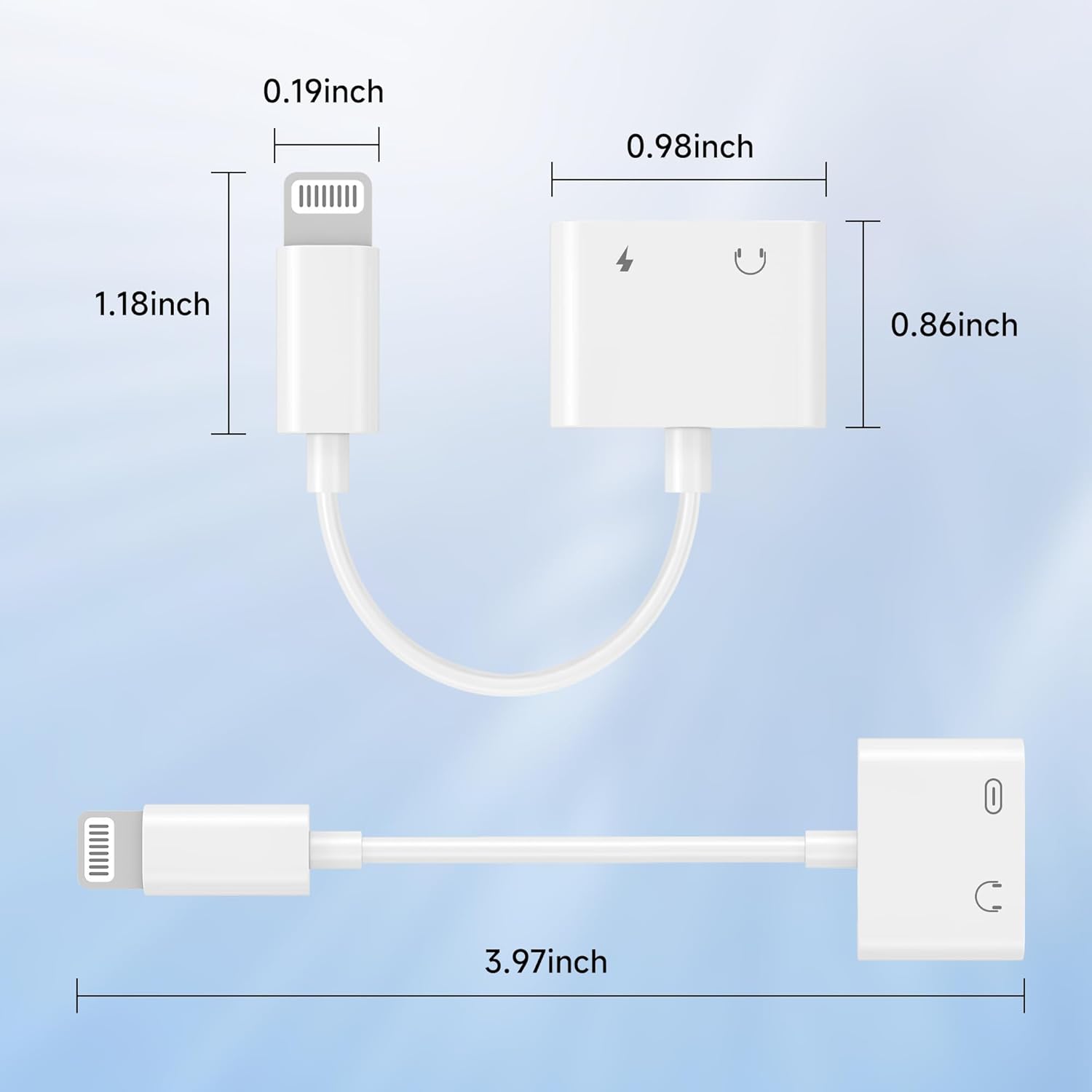 • [Apple MFi Certified] 2 Pack Lightning to 3.5mm Headphone Jack Adapter, 2 in 1 Headphone Adapter Aux Audio and Charger Adapter Dongle Cable Splitter Compatible with iPhone14/13/12/11/XS/XR