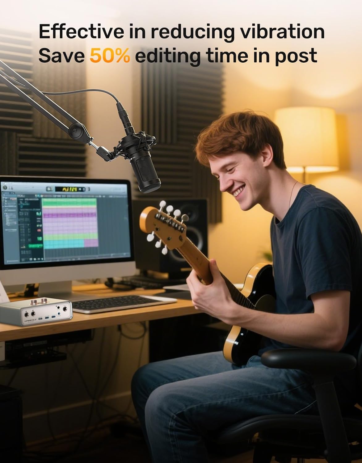 [Vibration and Noise Damping] The customized AT2020 shock mounts come with a metal-spring dual damping system that locks out vibrations from every angle. This shock mount works hard to muffle noise, shocks, and vibrations that travel through your mic stand, boom arm, or mount – reducing the hassle of post-editing.