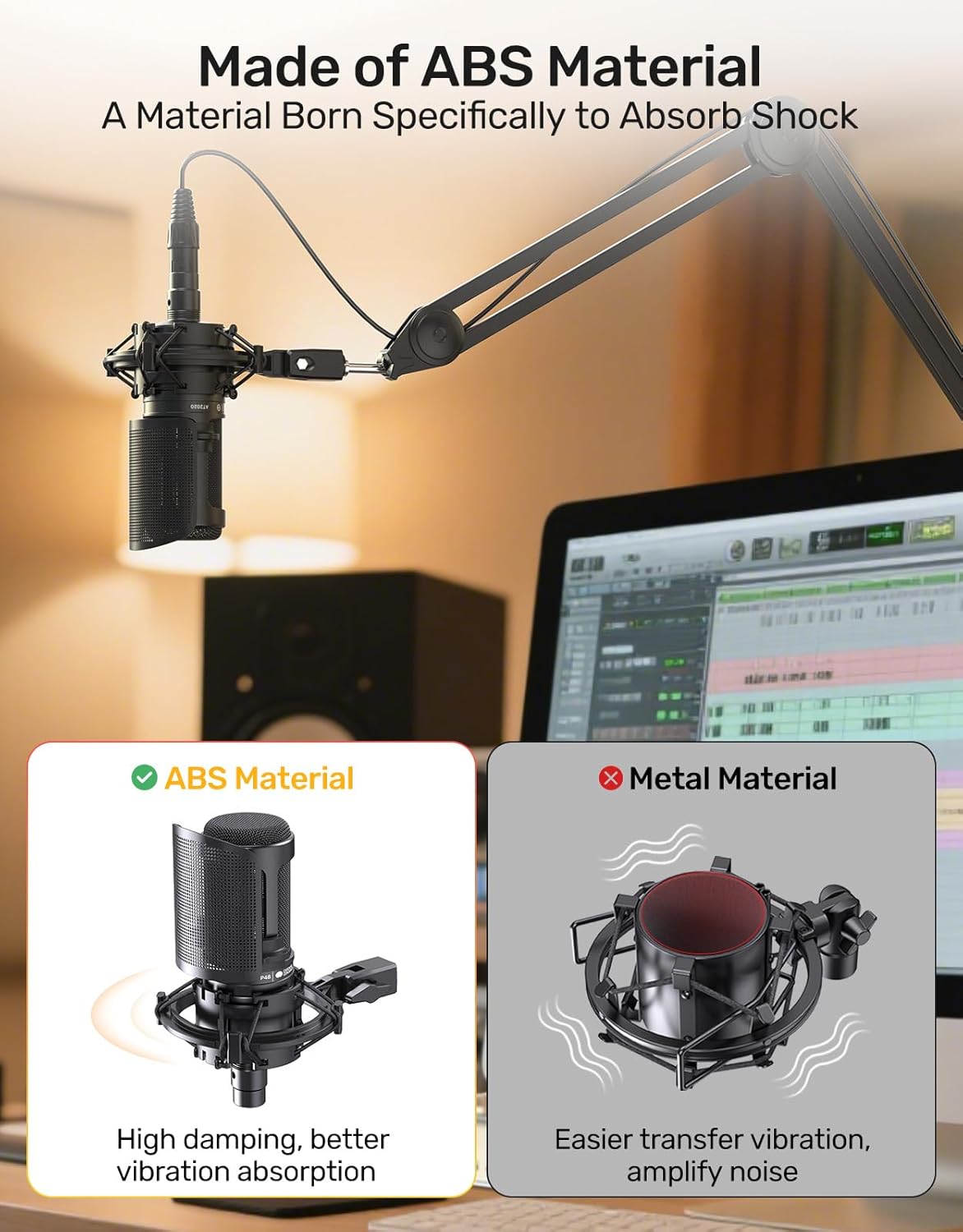 [Premium Acoustic Foam Pop Filter] Crafted with high-quality acoustic foam, this shock mount for at2020 cuts 80% of “p/b” noise interference – delivering crystal-clear audio for podcasts, gaming streams, live broadcasts, and recordings.