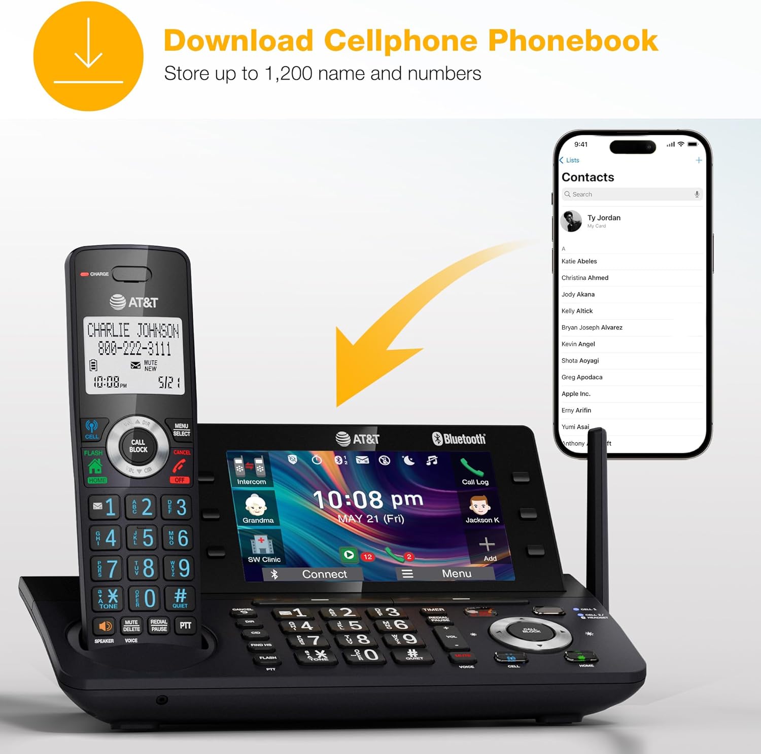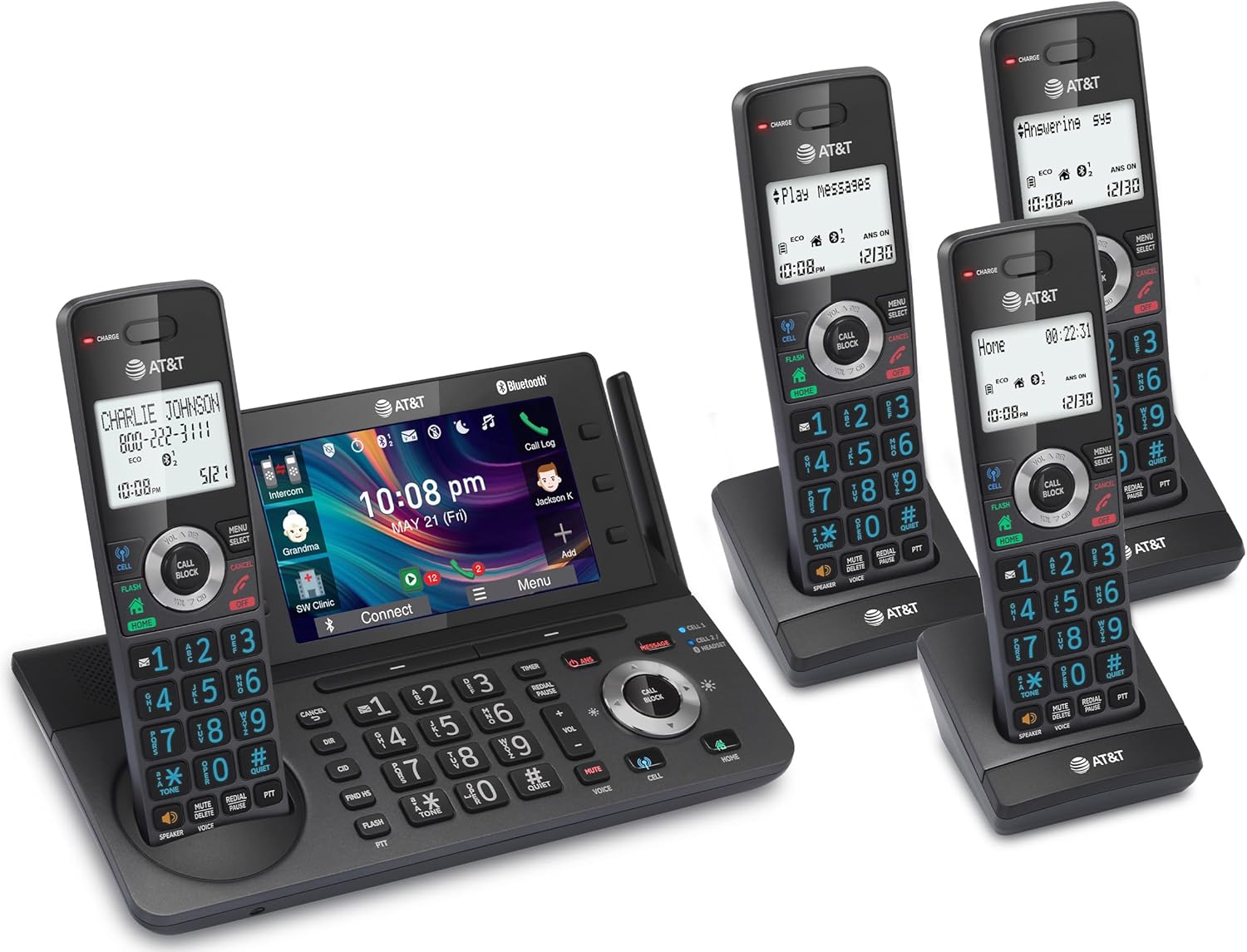 With the AT&T DLP73490 4-Handset Expandable Cordless Phone with Unsurpassed Range features the industry’s largest 5″ color base display, managing your communication has never been easier. Assign shortcuts on the large display for quick access to features that are important to you and easily view all the relevant information from messages left on the answering system. With Bluetooth Connect to Cell and Smart Call Blocker, you won’t have to worry about unwanted calls waking you up in the middle of the night or tying up the line. Robocalls are automatically blocked from ever ringing through—even the first time. You can also permanently blacklist any number you want with one touch. Bluetooth Connect to Cell technology on this cordless phone system lets you receive cell and/or landline calls from one home phone system. With a touch of a button, enjoy the high-tech benefits your smartphone offers. Even if your smartphone is in a different room, you can still access Siri or Google Now from the cordless handsets. Place a call, write, or read a text and perform all the other actions these services offer.