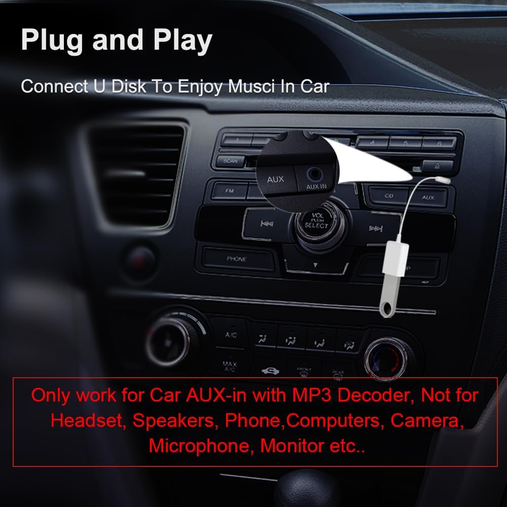 ❤【ONLY SUPPORT MP3 MUSIC FORMAT】– This aux cable only support MP3 Music Format,and don’t make file in your U-DISK and don’t store other documents.