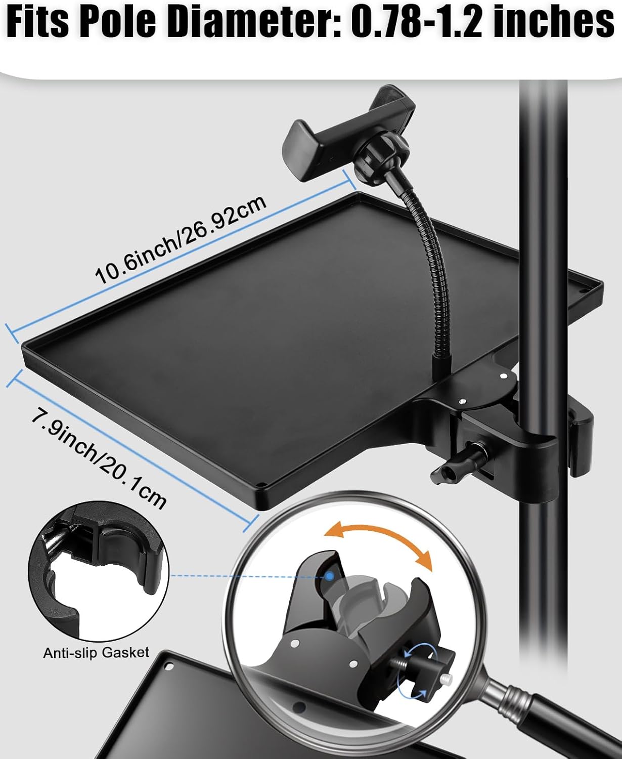 Mic Stand Tray Organizer: Crafted from durable ABS material, this mic stand tray boasts a 5.5 lbs weight capacity and a spacious 11.6″ x 7.9″ surface with raised edges to keep small accessories like picks, harmonicas, capos, strings, tuners, phones, lyric sheets, drinks, snacks, and tissues organized and within easy reach