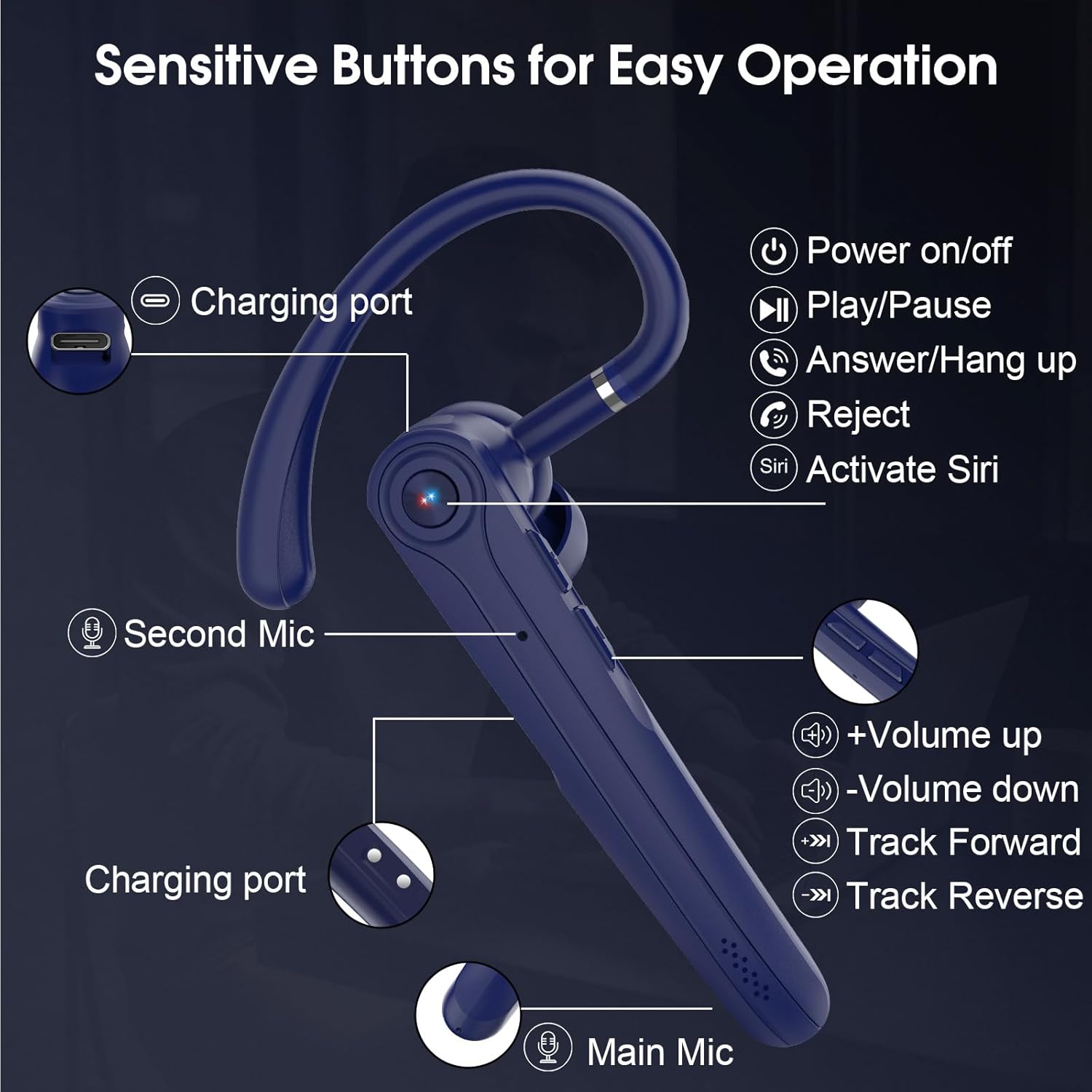 Multi-Function Control: The bluetooth headset features smart buttons for effortless call answering, hanging up, volume adjustment, and music playback. Its thoughtfully designed key layout and user-friendly buttons make it easy to operate, even in busy work scenarios, helping to boost your efficiency. Compatible with most Bluetooth devices, including iOS, Android, and Windows, it ensures a stable connection and delivers high-quality sound across various platforms.