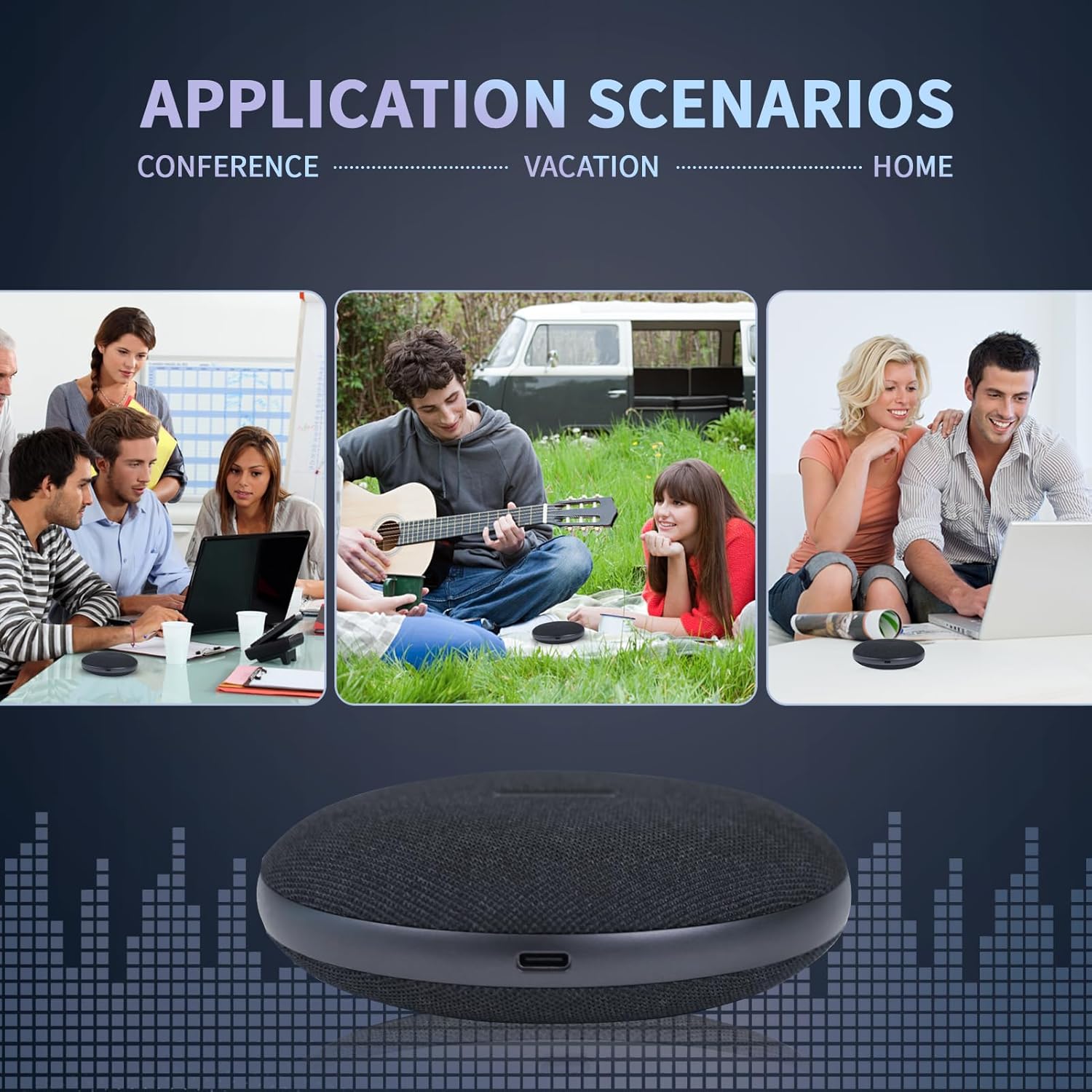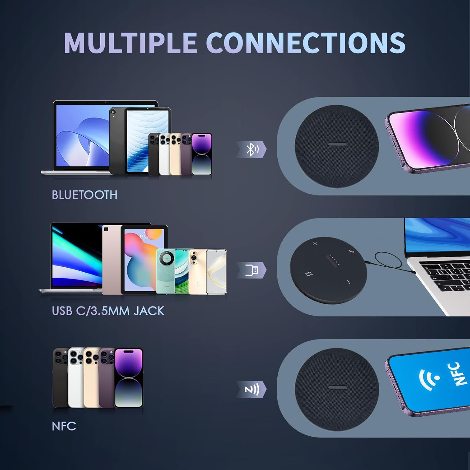 Bluetooth Speakerphone, Conference Speakerphone with 4 Mics 360° Voice Pickup, NFC, USB C, Bluetooth Portable Speakerphone for Office, Meeting Room, Compatible with Zoom, Team, Skype