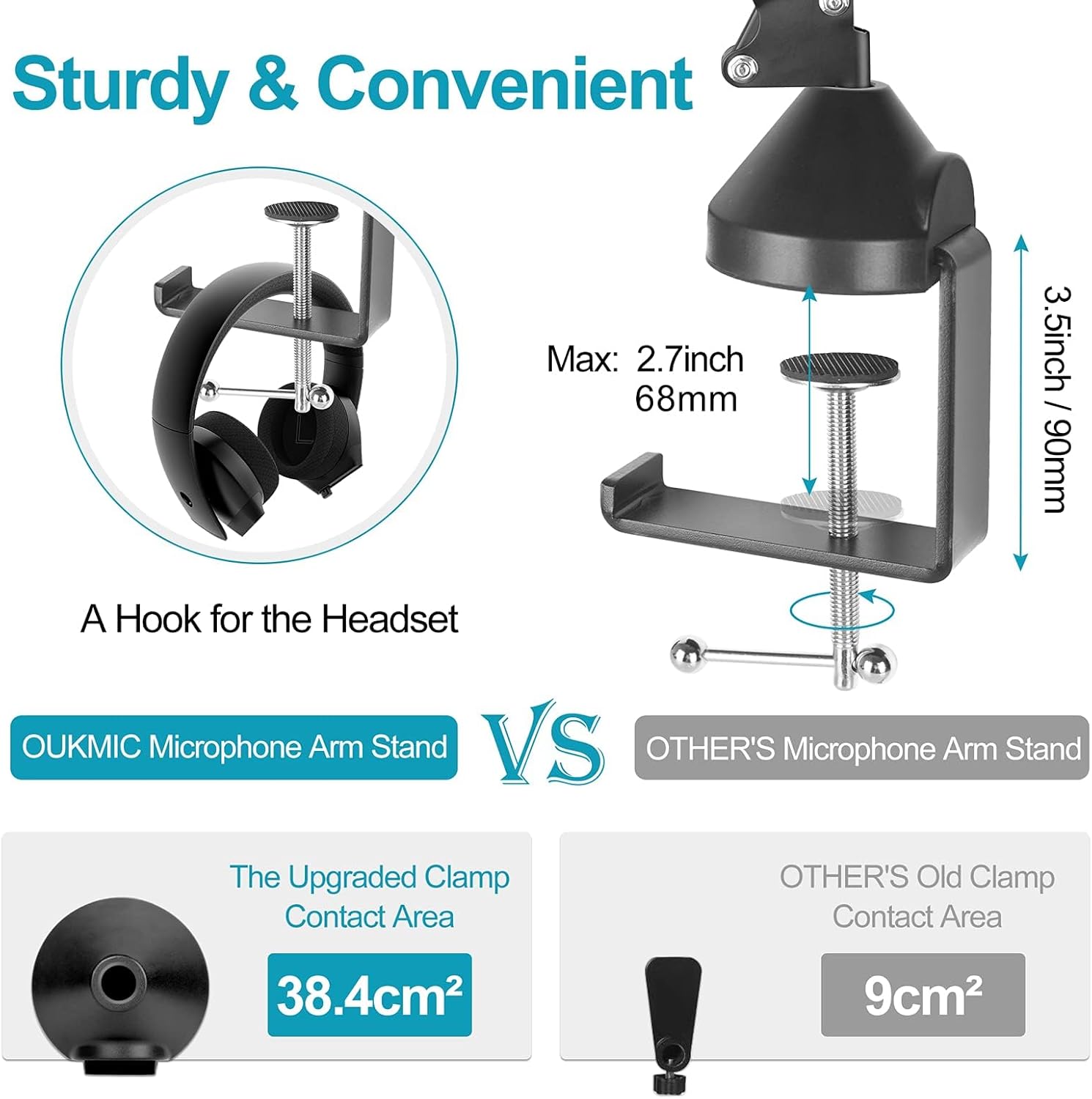 OUKMIC Mic Arm Stand, Adjustable Suspension Boom Scissor Mic Stand for Blue Yeti and Other MicsOUKMIC Mic Arm Stand, Adjustable Suspension Boom Scissor Mic Stand for Blue Yeti and Other Mics