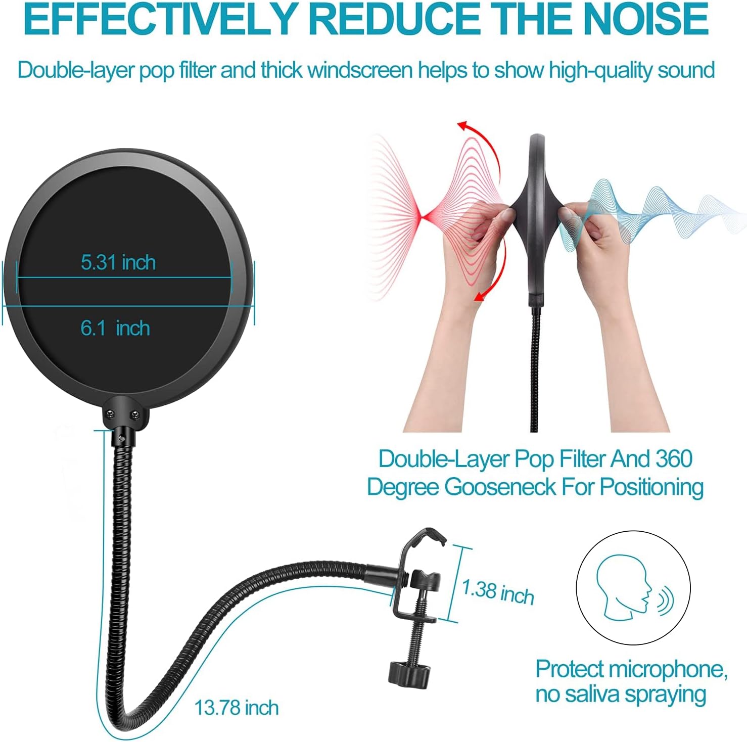 Boom Arm, Mic Arm Adjustable Microphone Arm with 2 Clips and Pop Filter, Mic Stand Desk with 3/8″ to 5/8″ Adapter for Blue Yeti Nano Snowball Ice, HyperX QuadCast, Recording, Gaming, Streaming