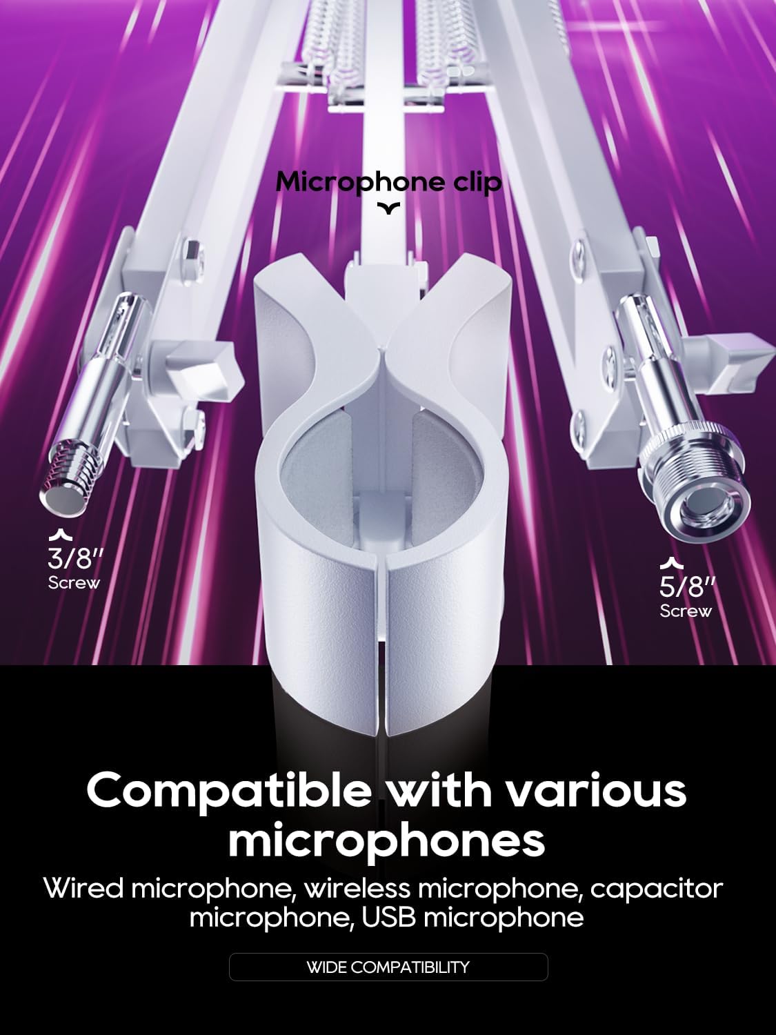 𝘽𝙍𝙊𝘼𝘿 𝘾𝙊𝙈𝙋𝘼𝙏𝙄𝘽𝙄𝙇𝙄𝙏𝙔:Our Mic Arm compatible with most standard mics with a standard 5/8″ or 3/8″ threading.