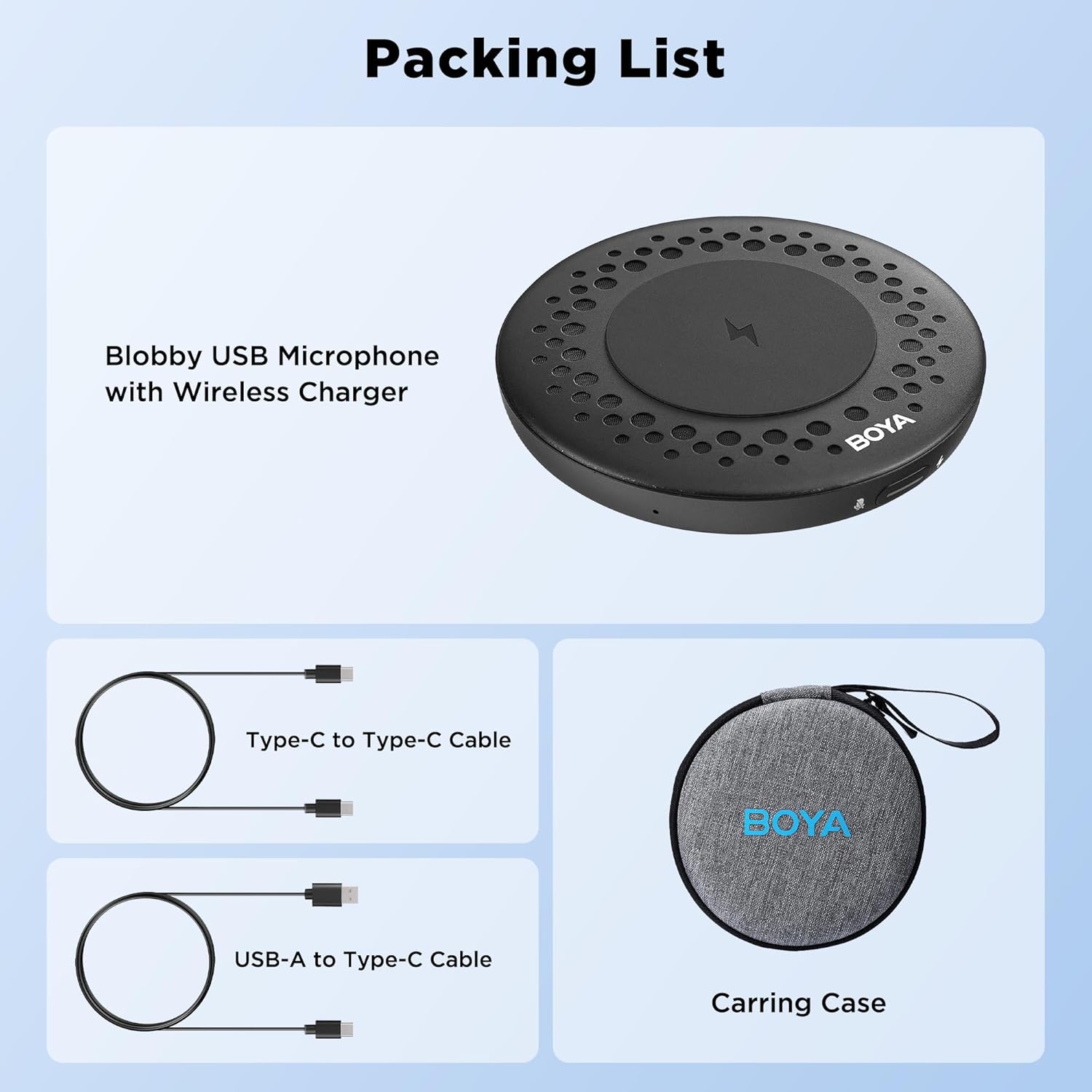 • BOYA Blobby USB Conference Microphone,Desktop Computer Microphone with Wireless Charger, Omnidirectional Condenser PC Mic for Video Conference Online Class Skype Zoom Meeting