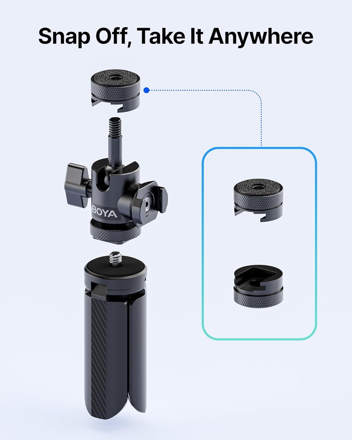 BOYA Magic Tripod Stand for Desktop Microphone with Non-slip Rubber Feet, Foldable Desk Mic Stand for Gaming, Podcasting, Meetings, Chatting