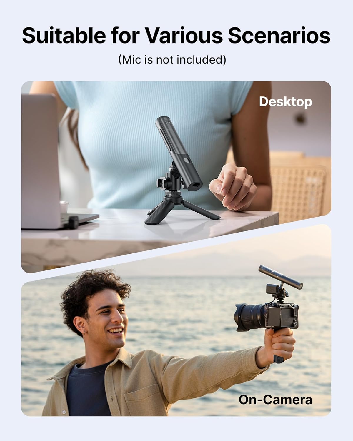 Versatile Usage: This foldable mic stand suits a wide range of scenarios. Place it on your desk for streaming, voiceovers, or virtual meetings. Or fold it up and use it handheld for outdoor filming. A practical and user-friendly stand for every creator.