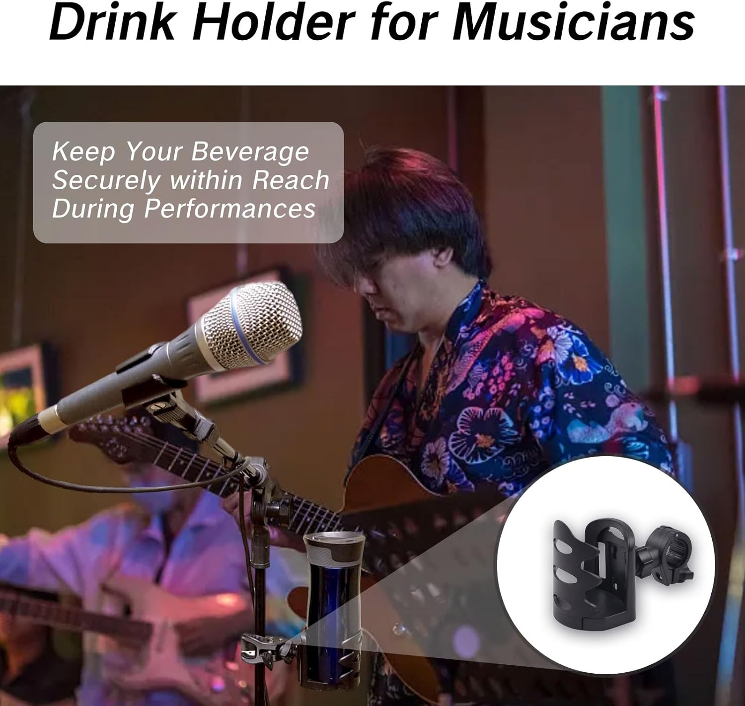 Elevate your stage presence with the Mic Stand Cup Holder. Designed to provide maximum grip and stability, this drink holder ensures that your beverage is always within arm’s reach during performances. Say goodbye to spills and distractions caused by flimsy cup holders—trust us to keep your drink securely in place while you focus on your music.Whether you’re gigging on stage or practicing in the studio, the delivers reliable performance when you need it most. Its sturdy clamp design and solid construction prevent slipping and ensure that your drink stays securely attached to your mic stand. Enjoy peace of mind knowing that your beverage is safe and accessible throughout your performance.We’re committed to providing exceptional value and support to our customers. With our industry-leading 3-year warranty, you can trust that your investment is protected. If you ever encounter any issues with your drink holder, simply reach out to us for prompt and reliable assistance. We’re dedicated to your satisfaction and will go above and beyond to ensure your needs are met.Give the present of convenience and utility to the musician in your life with the Mic Stand Cup Holder. Whether they’re a solo singer, guitarist, drummer, or keyboardist, this versatile accessory is sure to enhance their performance experience. With its durable construction and adjustable design, it’s the ideal addition to any musician’s toolkit.Engineered with the needs of musicians in mind, the Mic Stand Cup Holder offers a range of advanced features to enhance your performance. Its durable ABS plastic construction ensures long-lasting durability, while its adjustable design accommodates a wide range of tubing sizes. With 360-degree adjustment and easy installation, it’s the ultimate accessory for musicians seeking convenience and versatility on stage.