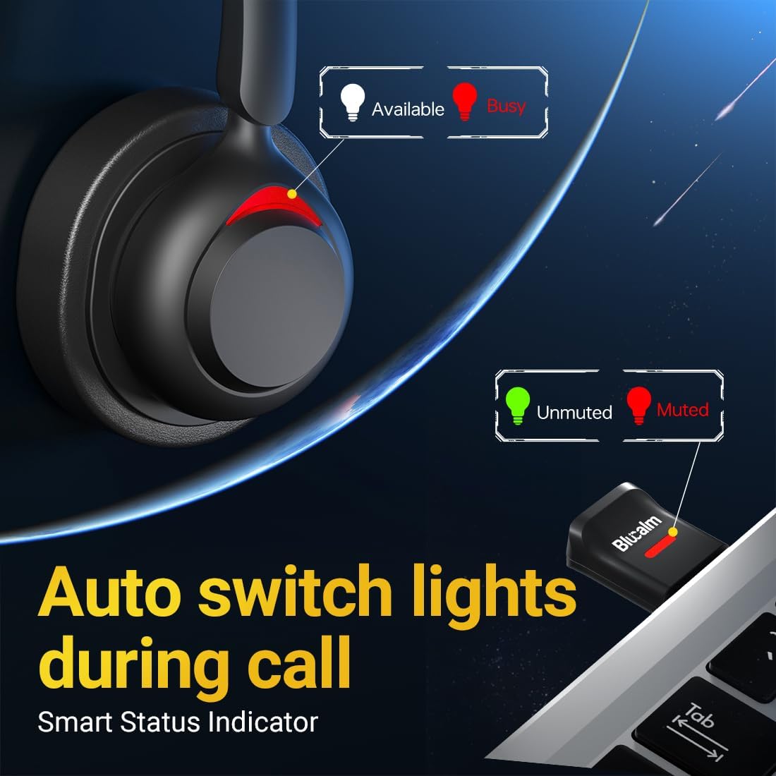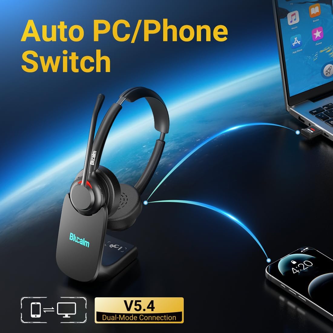 • Business V5.4 Wireless Headset with Charging Base, Computer Headset with Mic & 2.4 G USB Dongle for PC/Phone Work, Wireless Headphones with Noise-Cancelling Mic for Office, WFH, Teams, Zoom