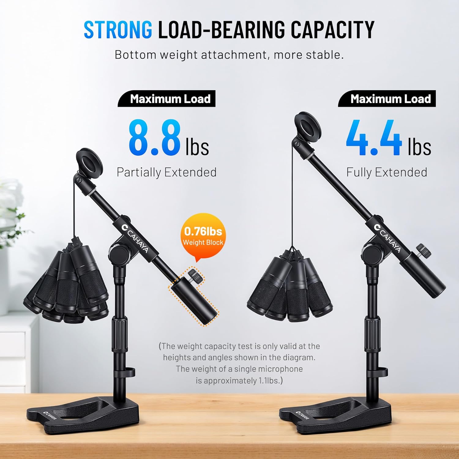 Home Microphones & Accessories Stands CAHAYA Mic Stand Desk Adjustable – Boom Arm Desktop Microphone Stand Metal Weighted Base A-frame Table Mic Mount with 2 Mic Clips 3/8″ to 5/8″ Screw Adapter Mic Mount for Singing Stage Performance