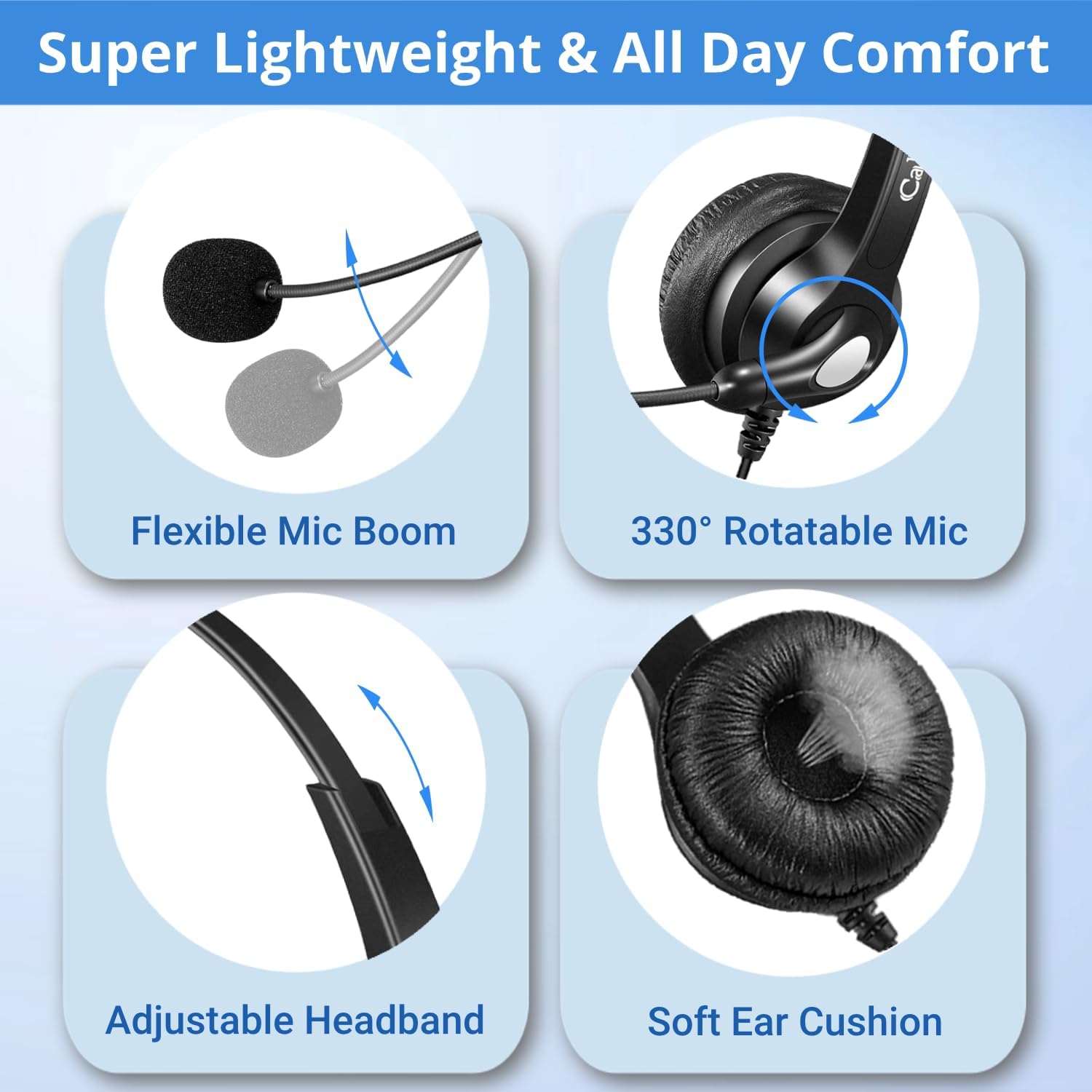 【Crystal Clear Calls】 This high sound quality RJ9 Call Center Phone Headset with Microphone enables excellent sound quality for natural listening experience, features Noise Cancelling Microphone to reduce background noise, Acoustic Shock Protection Circuit to protect your hearing. Less noise, Clearer voice.