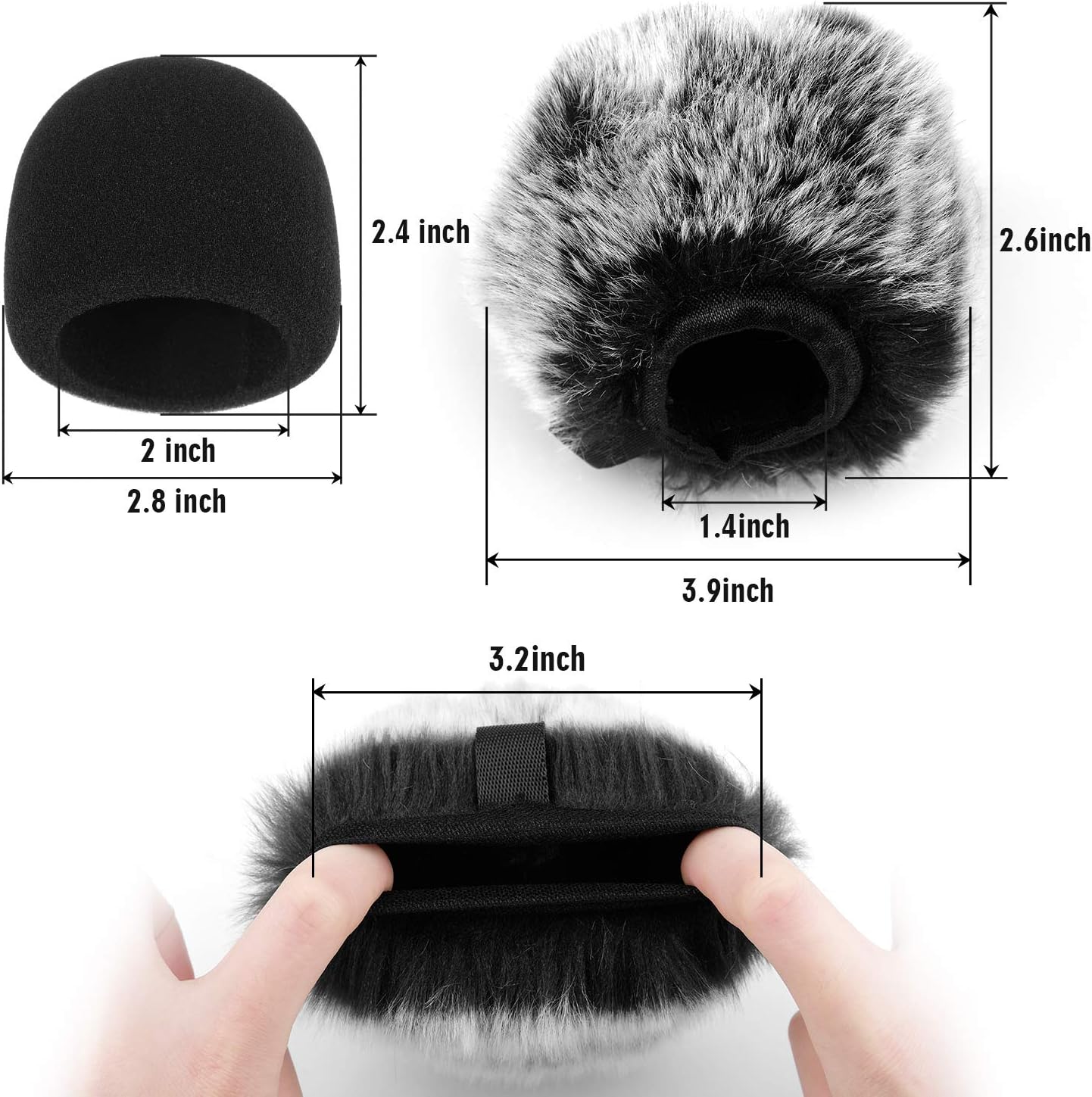 Attention: The windscreen foam covers are squeezed in a separated plastic bag. Please take them out for a little time then it will return to its original shape.
