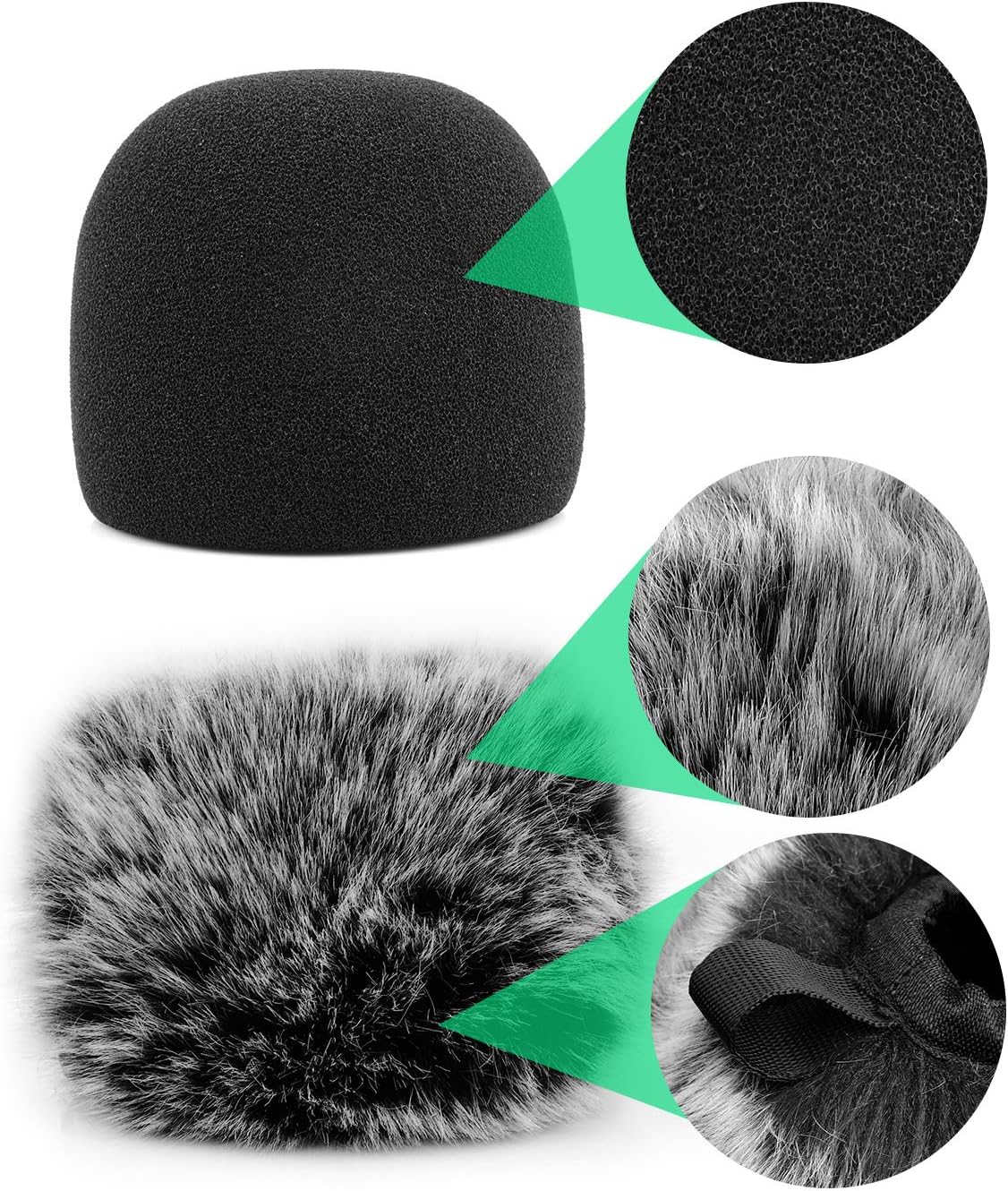 ChromLives 1+1 Microphone Furry Windscreen Wind Muff and Mic Foam Cover Compatible with Blue Yeti Condenser, Combo 2Pack
