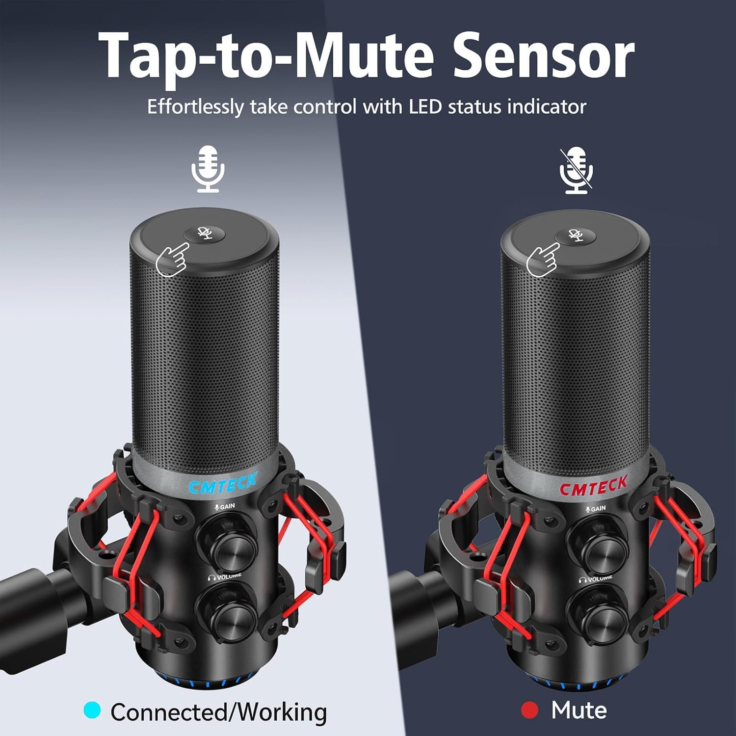 • CMTECK USB Microphone for PC, Condenser Mic for Streaming, Podcasting, Video, Meeting, Gaming, Gain Control, Monitoring Headphone Jack, Anti-Vibration Shock Mount and Pop Filter (Posh Black)