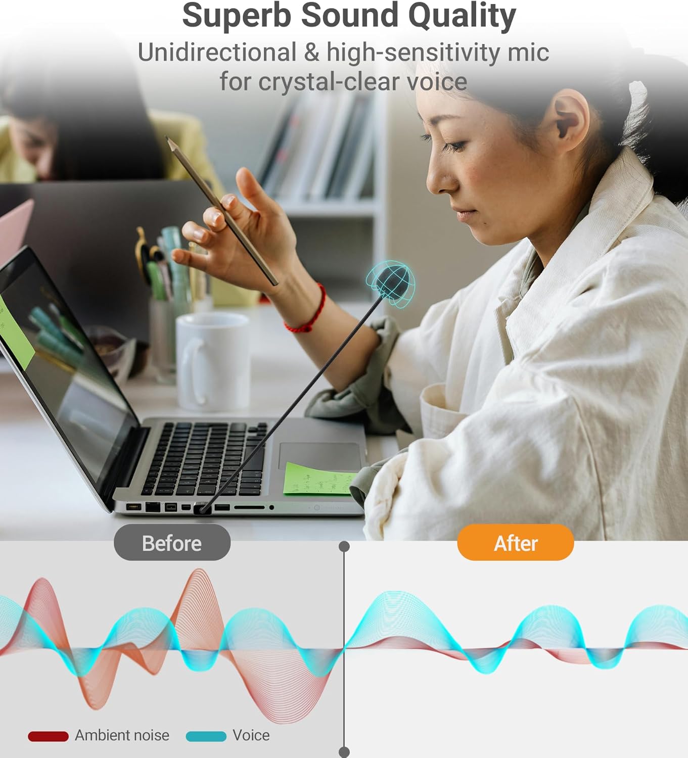 【Crystal Clear Sound Quality】 Using 96 kHz/24-bit ADC, a high-sensitive ECM unit, and a unidirectional pickup pattern, your voice could be recorded clearly without ambient hissing, perfect for online meetings.