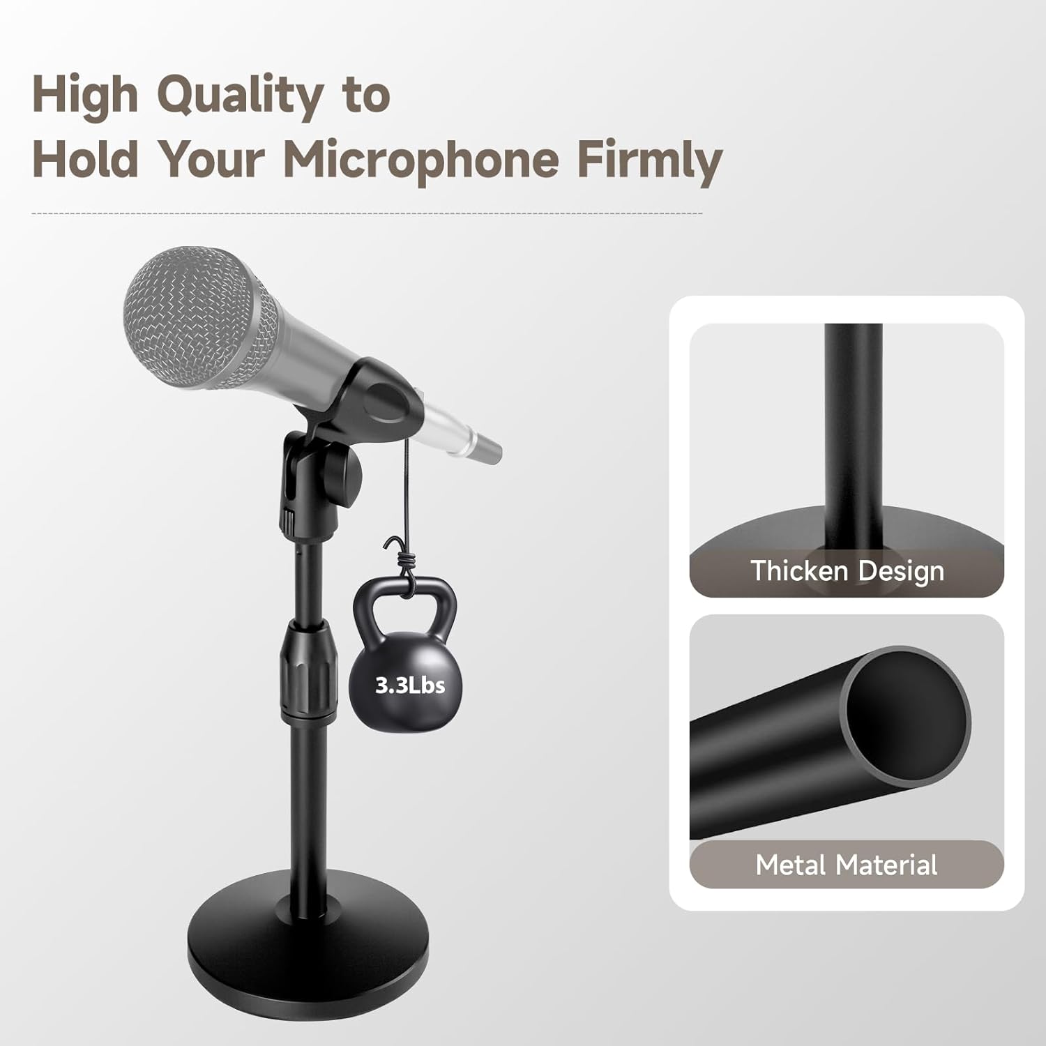 4️⃣ Professional Grade Material – Made from aerospace-grade aluminum, this microphone stand holder can support up to 3.3lbs, providing a stable platform for shake-free recording sessions. Upgrade your recording setup with this durable and reliable mic stand.