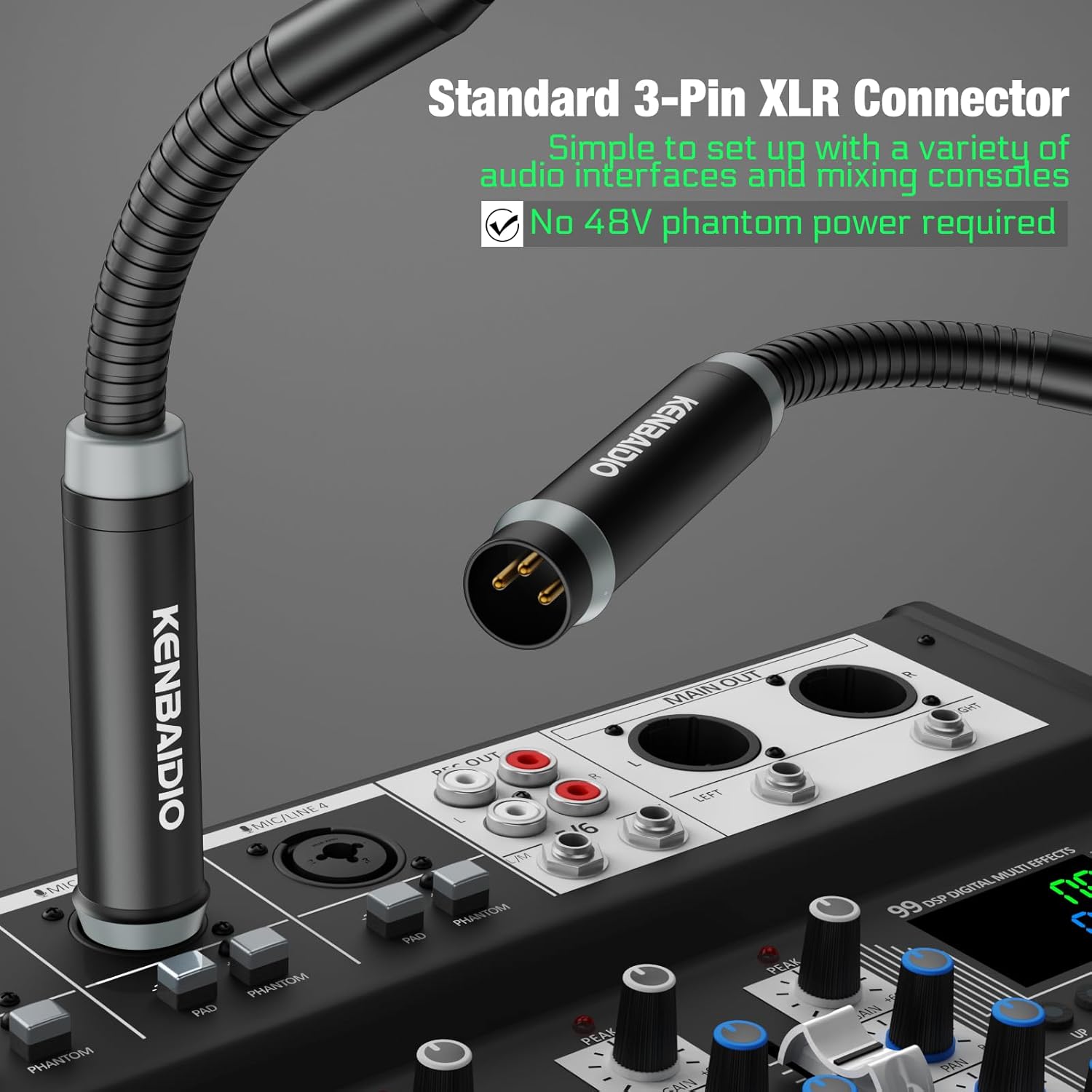 XLR Interface : The dj microphone features a flexible gooseneck and a 3-pin XLR male connector at the base. Can plug into any XLR microphone input on any DJ mixer. Connects directly to most mixing consoles to provide talkback or PA functionality. The XLR plug on the end plugs straight in, while the gooseneck allows for optimum positioning.