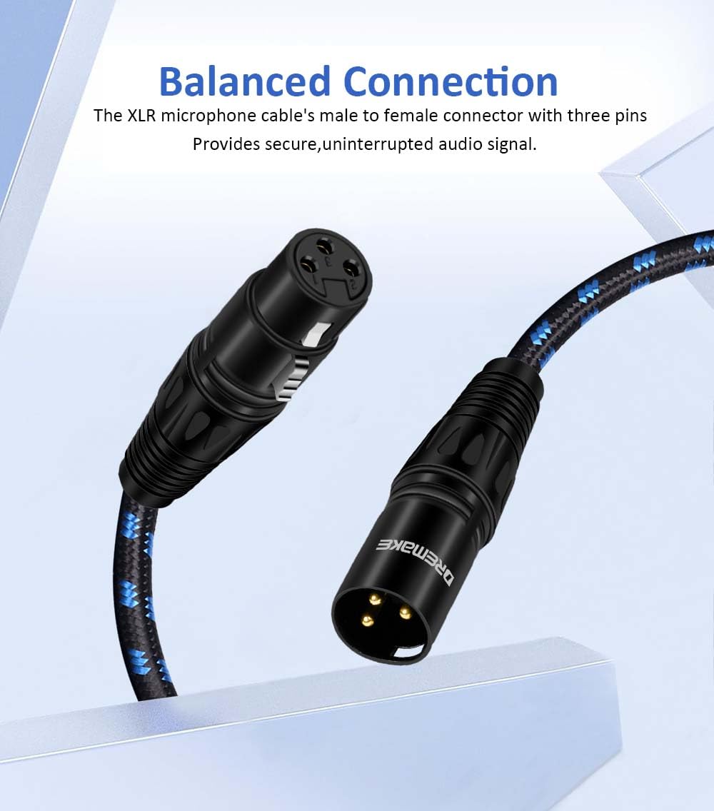 WHAT YOU GET: 1 X DREMAKE 3-Pin XLR Male to Female Balanced Audio Patch Snake Cable. Enjoy the Music!