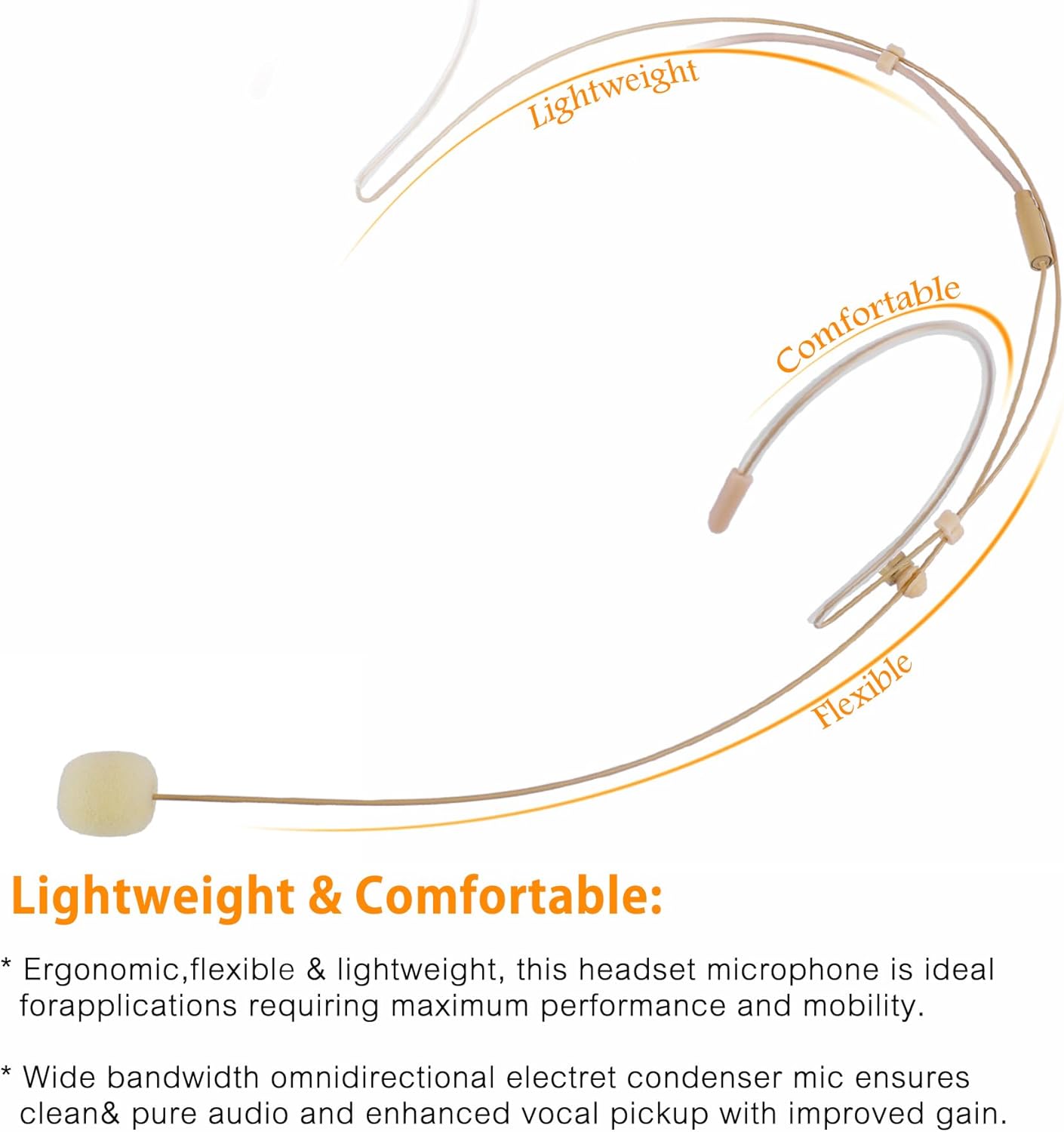 • Dual Earhook Headset Microphone – Compatible with Shure Wireless Transmitter, Over-Ear TA4F Mini XLR Mic with Windscreen, Clear Sound for Lectures, Performances, Theater – Professional, Lightweight