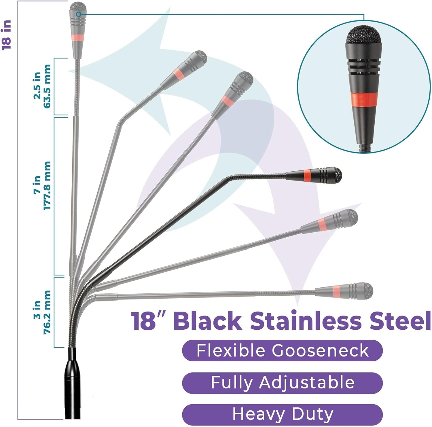 Features a 18 inch uni-directional noise cancelling microphone gooseneck with cardioid microphone creates narrow directional that focuses on the voice in front of the microphone and suppresses unwanted noise from the sides and back with built-in state of the art microphone element eliminating electromagnetic hum and RF interference