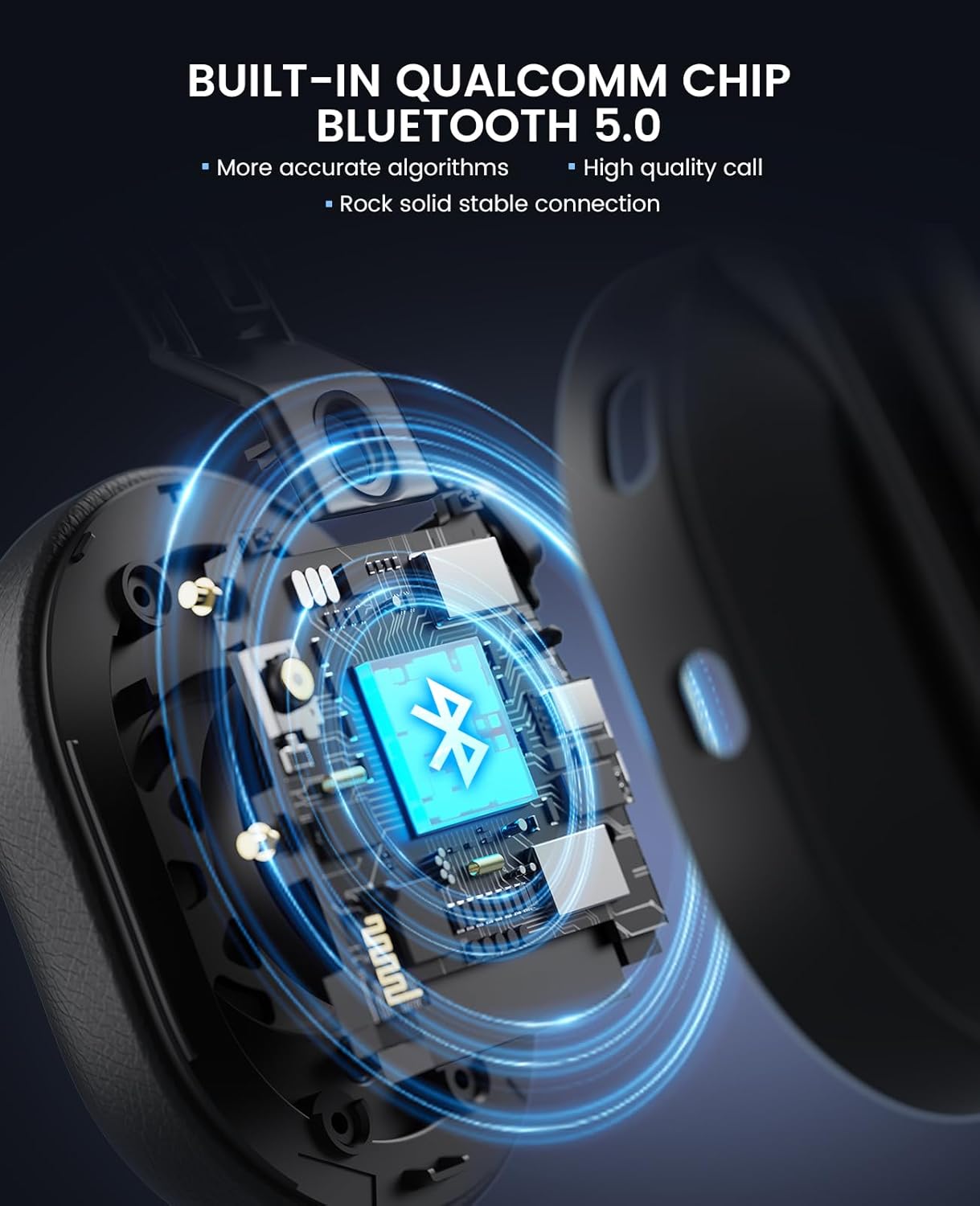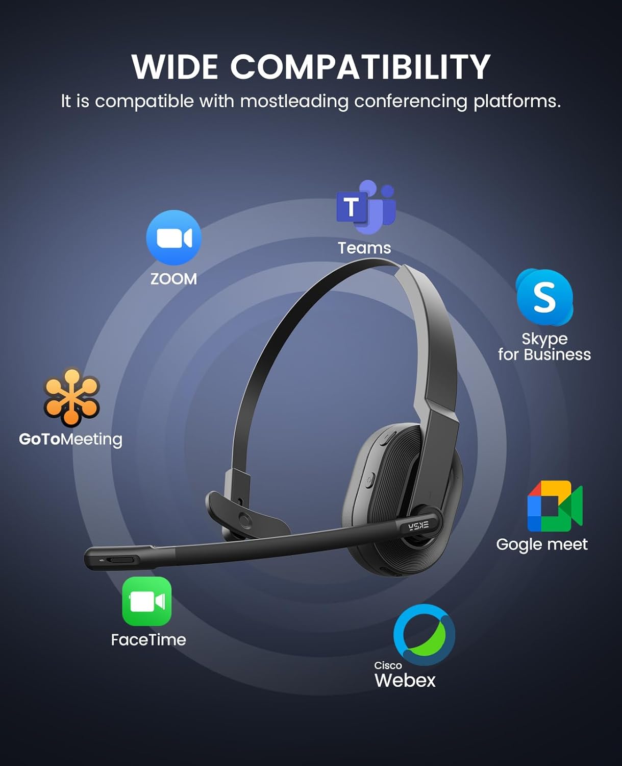 Advanced AI Noise Cancelling Microphone: H5SE bluetooth headset features an AI ENC chip that identifies your voice and effectively reduces up to 99.6% of background noise, ensuring clear and crisp communication, perfect for noisy workplaces.