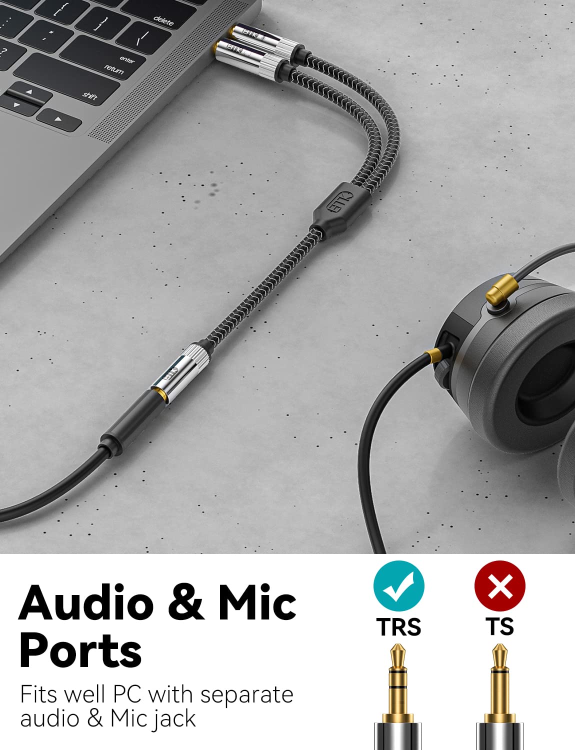Tangle-free design EMK 3.5mm Y Mic Splitter Cable is made of aluminum alloy and braided nylon casings that resist corrosion and ensure optimum sound quality. the 3.5mm Splitter cable passes 10000+ bend tests and is strong enough to withstand any twist, tug, and tangle.