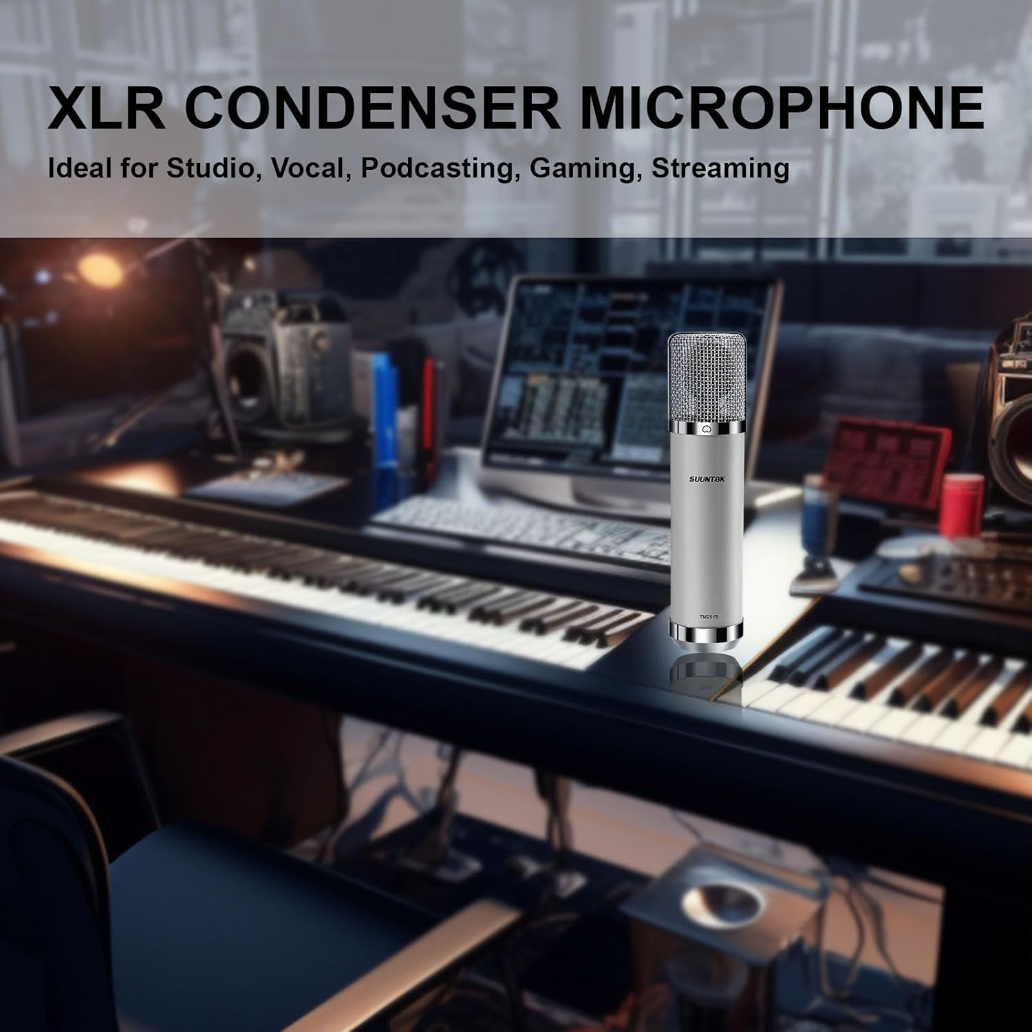 [CARDIOID POLAR PATTERN]: The cardioid podcast microphone is good at blocking out background noises, accurate capture of sound details and keeping natural original sound to your voice. The recording microphone xlr is designed for studio recording, home studio, podcasting, voice-over, streaming, YouTube video production, etc.
