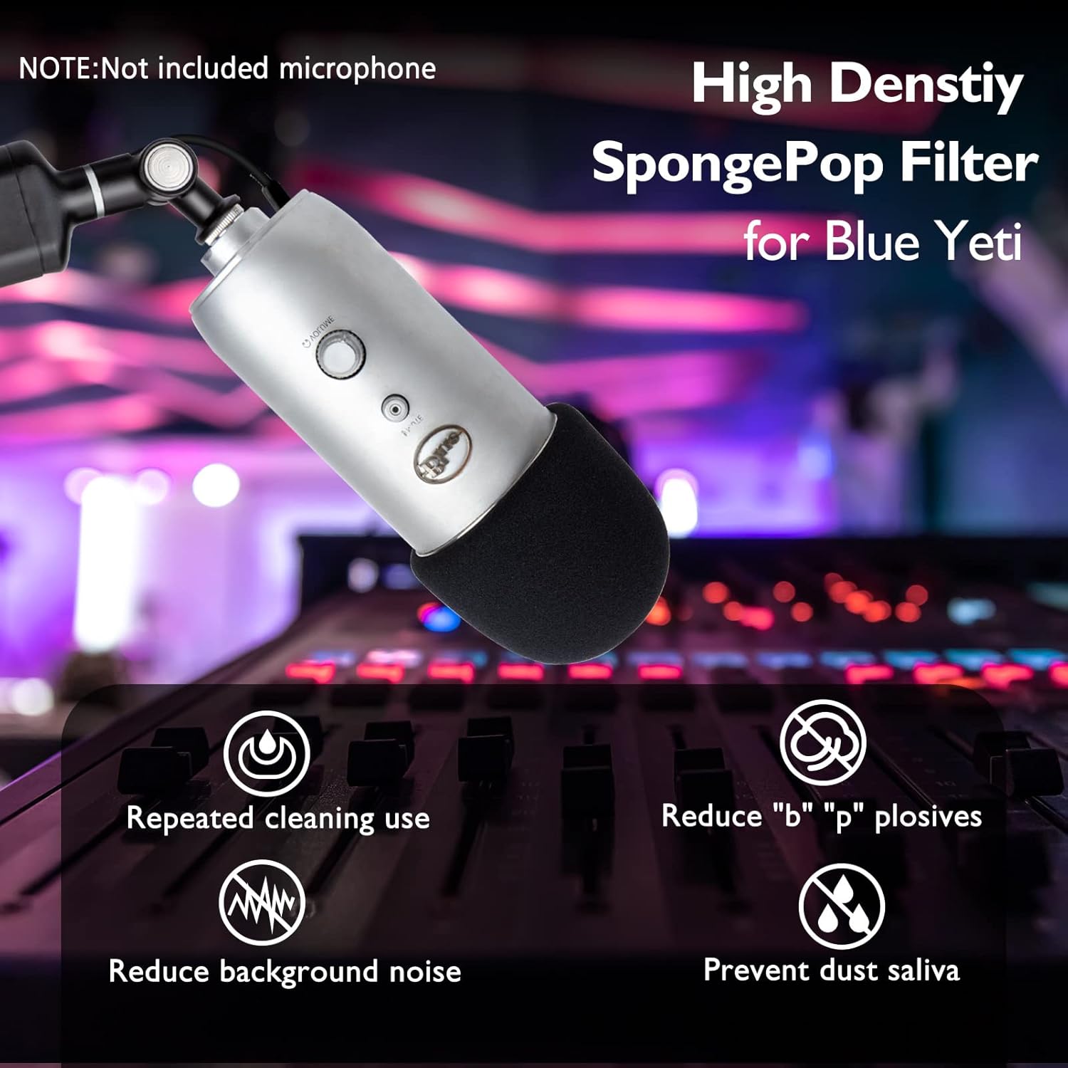 Blue Yeti Foam Cover Perfectly adapted to Blue Yeti, Blue Yeti microphone.Made of high density sponge, washable and reusable.Efficiently Block out the “B” “P” plosives and background noise.