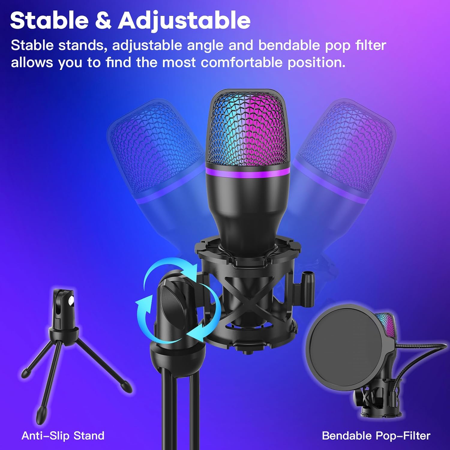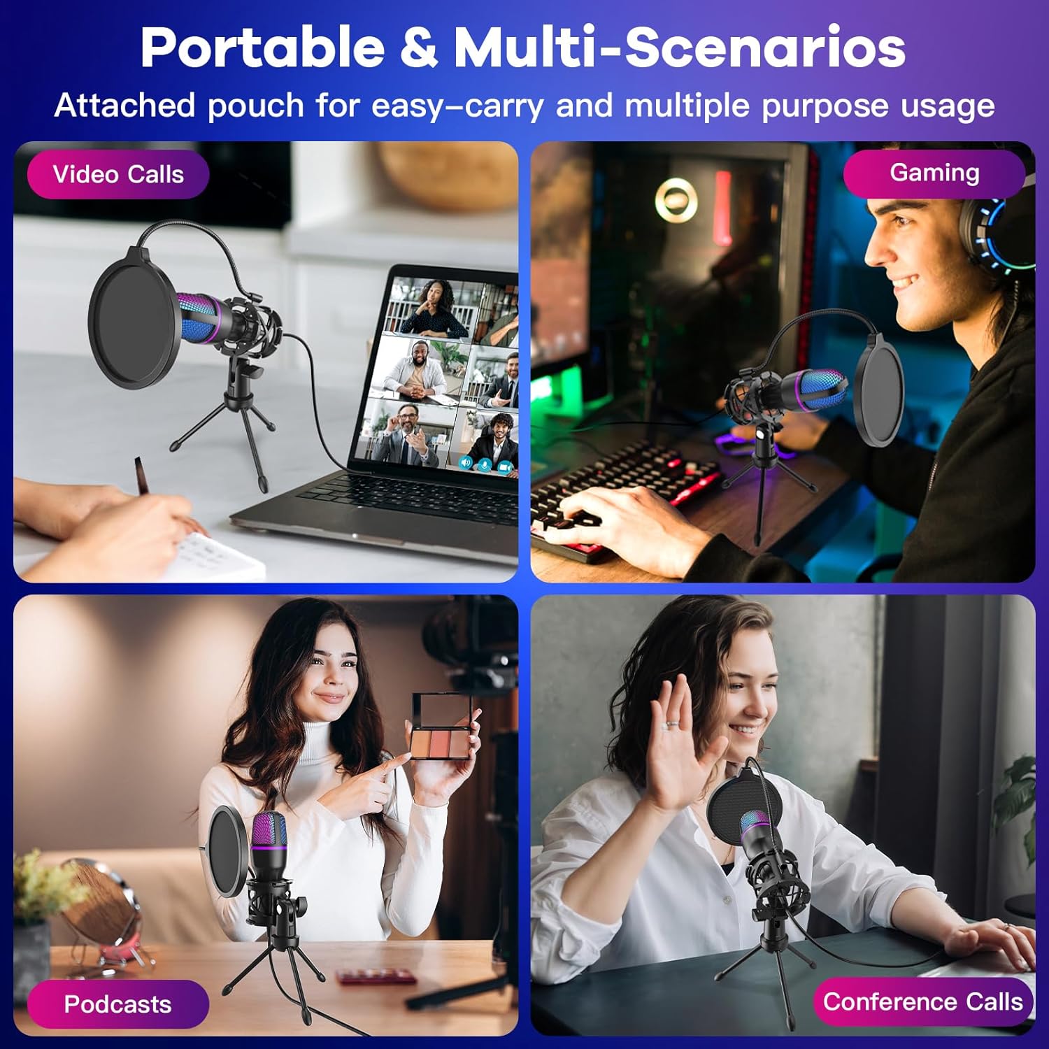 【Portable & Easy to Install】The USB microphone features a stable tripod stand, making it easy to set up. By attaching a portable pouch, just simply unfold the three-legged stand, adjust the position of the pop filter, and pack it into the pouch, it’s ready to plug and play.