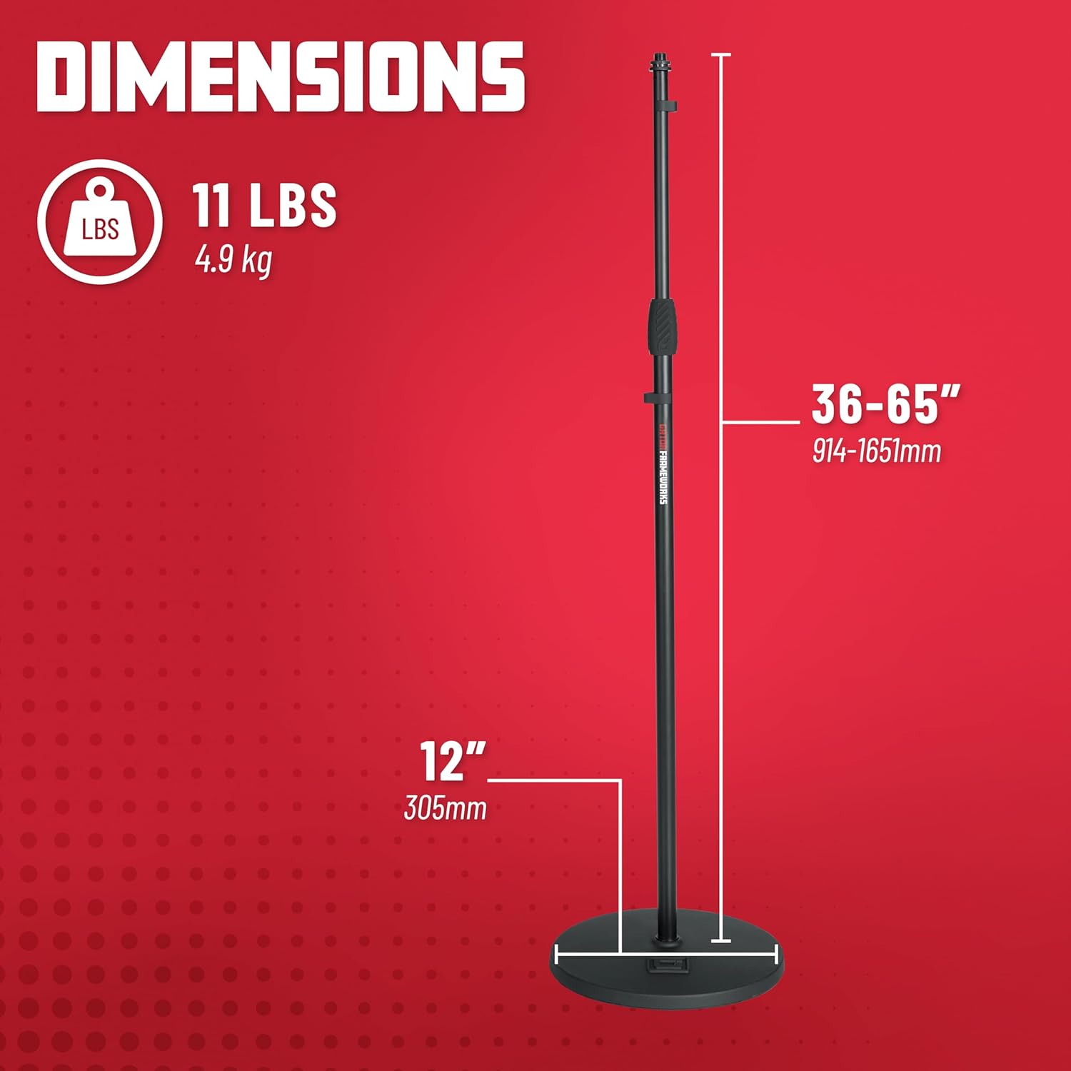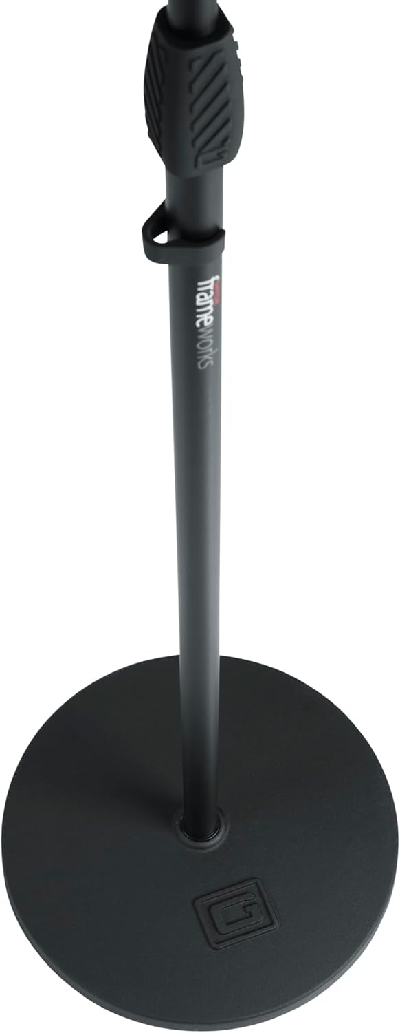 Frameworks round base mic stand with 12″ round base and standard twist clutch