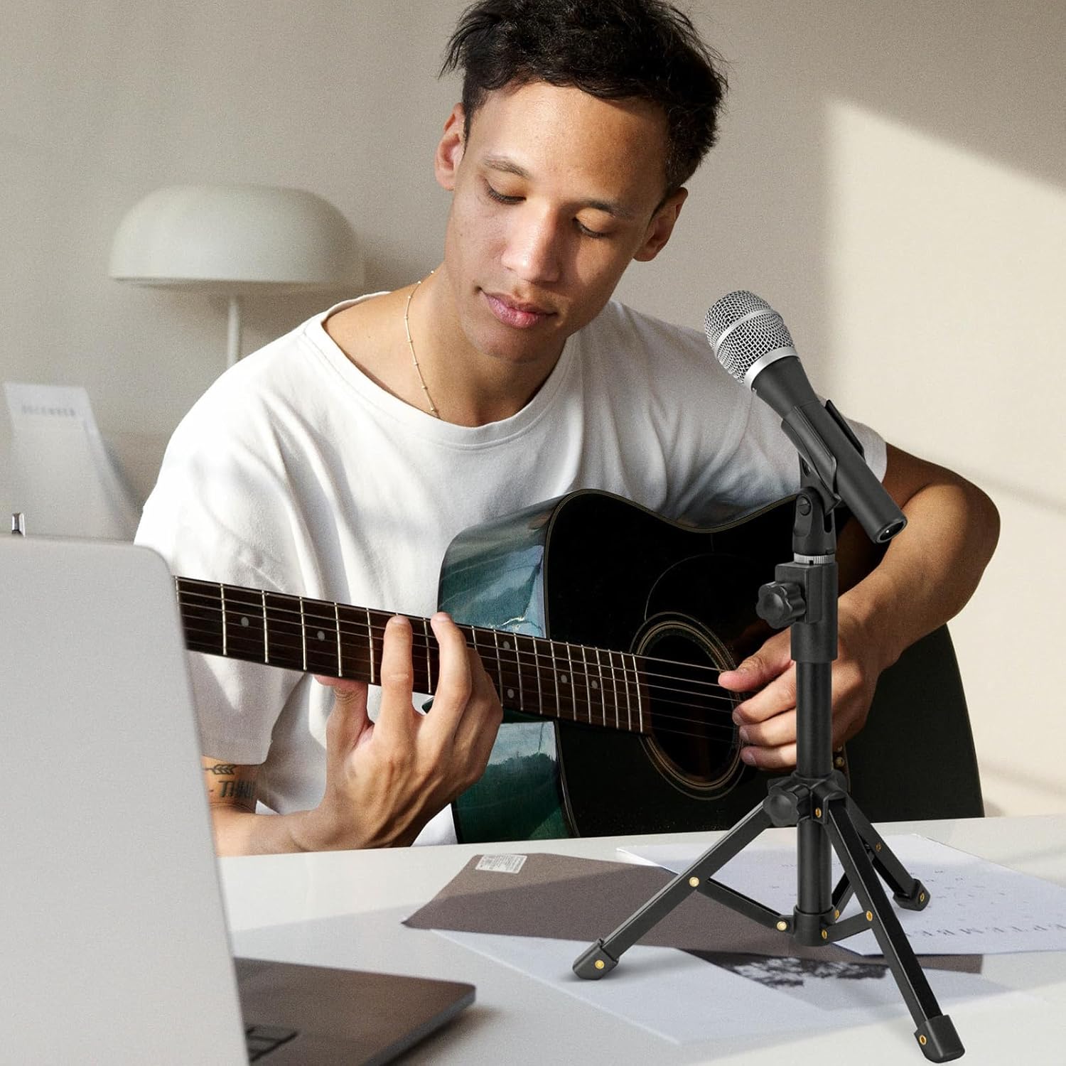 Desk Mic Stand, JCWINY Portable Foldable Microphone Tripod with Mic Clip Holder Adjustable Table Microphone Stand for Blue Yeti Snowball Spark and Other Dynamic Microphones