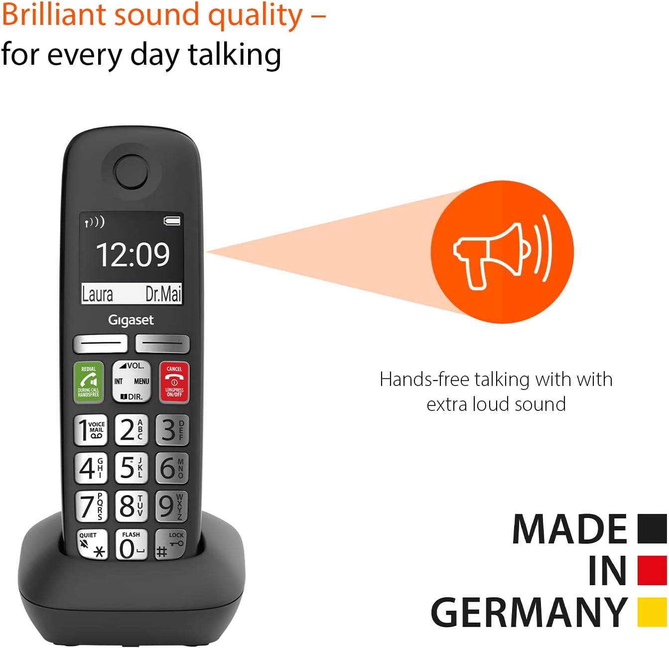 QUALITY MADE IN GERMANY – Designed and manufactured in Germany – the environmentally friendly ECO DECT technology ensures reduced energy consumption.