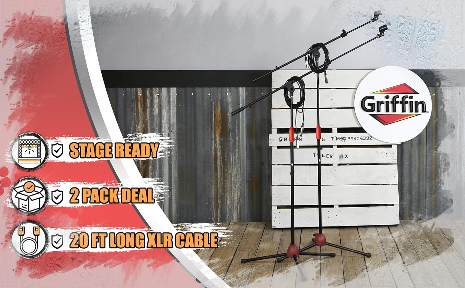 (StageLOCK Series) Telescoping Microphone Stands by Griffin (PACK OF 2) with Mic Stand Adapter