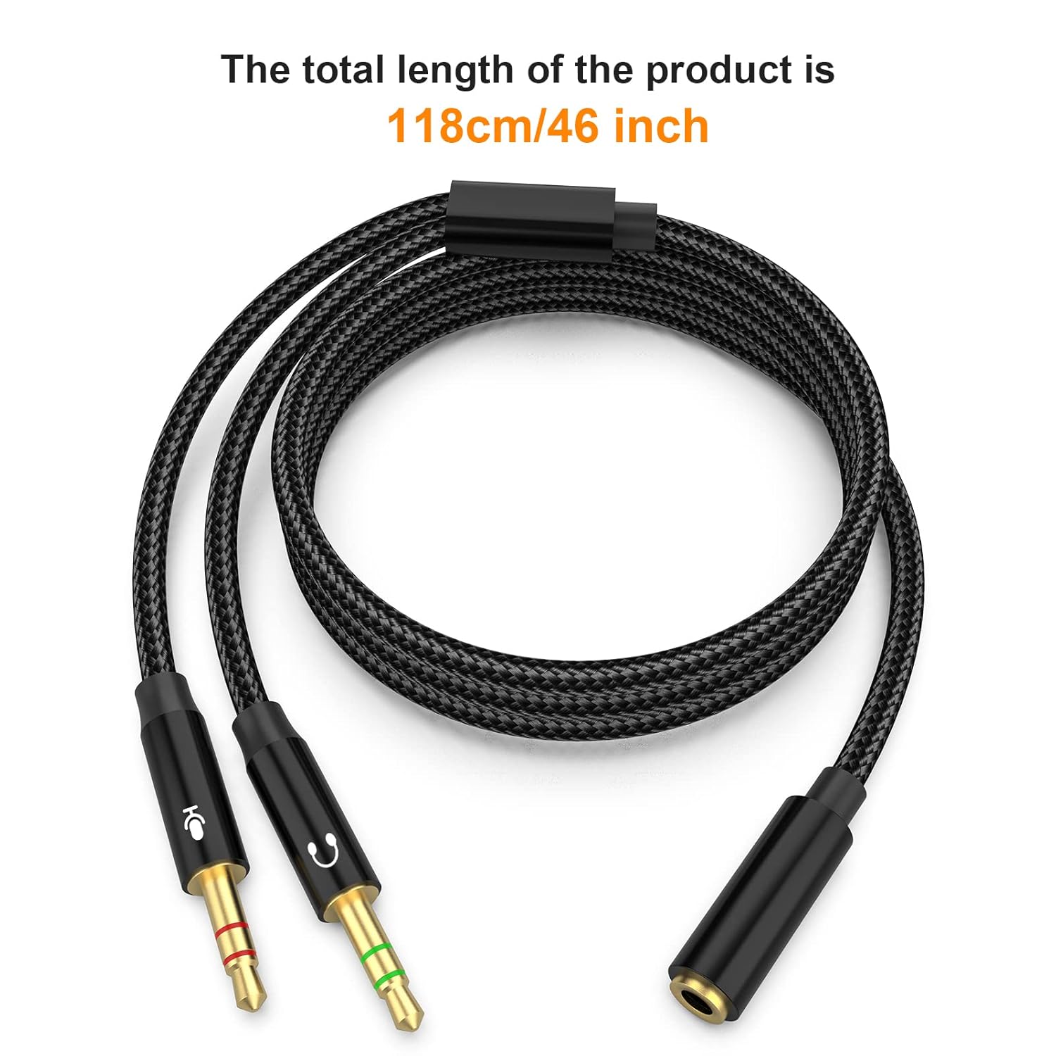 Headphone Splitter Adapter:The audio mic splitter features gold-plated connectors, aluminum housing and oxygen-free copper wire to ensure higher audio transmission without signal loss and noise.