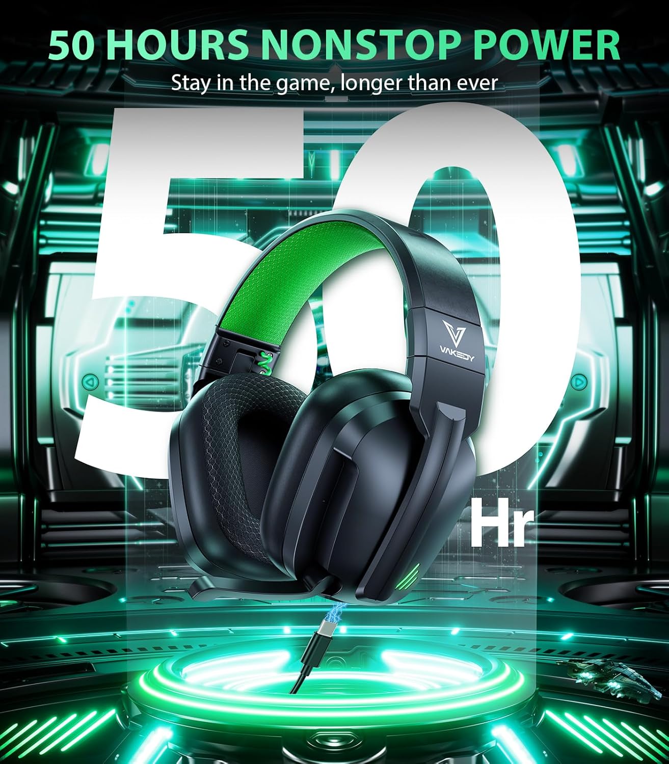 【Extended Battery Life and Fast Charging】With the Vakedy HW11 wireless gaming headphones, enjoy over 50 hours of gaming with their impressive battery life, and up to 35 hours with LED mode. These headphones are designed to keep you in the game with voice prompts when power is low, and a quick 3-hour full charge ensures you’re back to action in no time